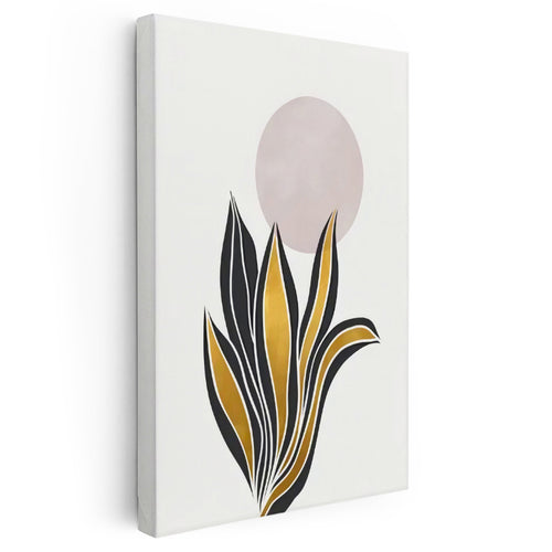 Tamperli Gerçek Cam Tablo Siyah Yapraklı Sarı Botanik Çiçek Tablosu Duvar Dekoru