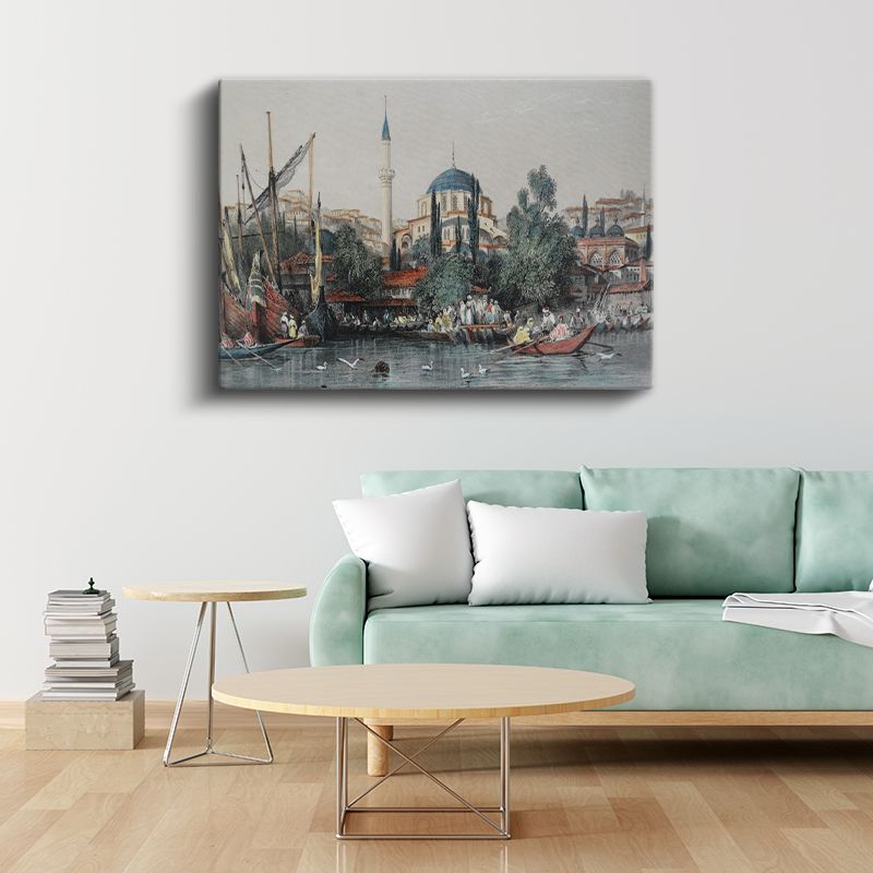 İstanbul Silueti - Tarihi Camiler ve Deniz Manzarası Kanvas Tablo