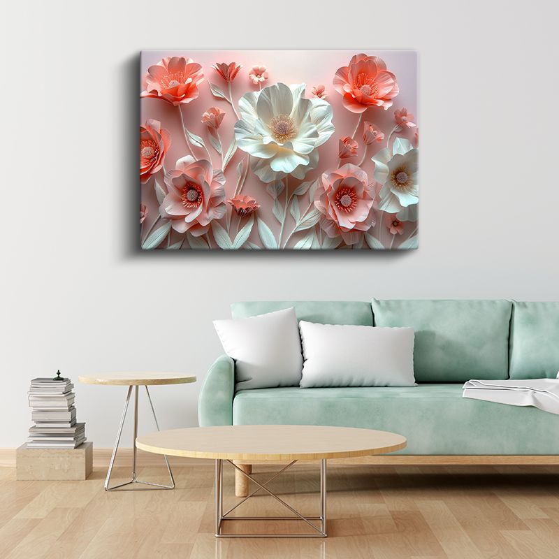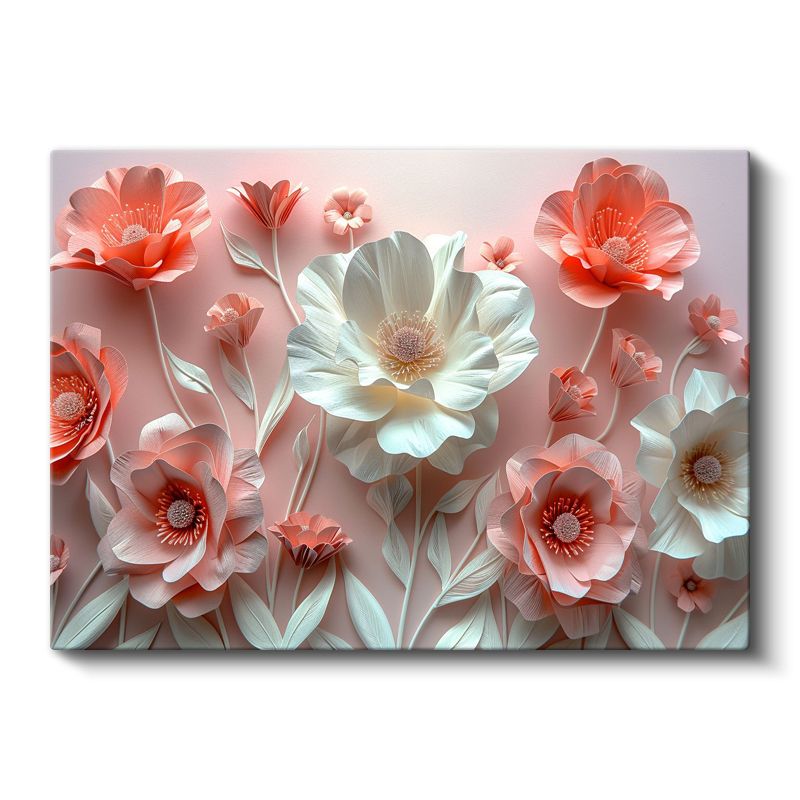 3D Çiçekler - Pembe ve Beyaz Kağıt Sanatı Kompozisyonu Kanvas Tablo