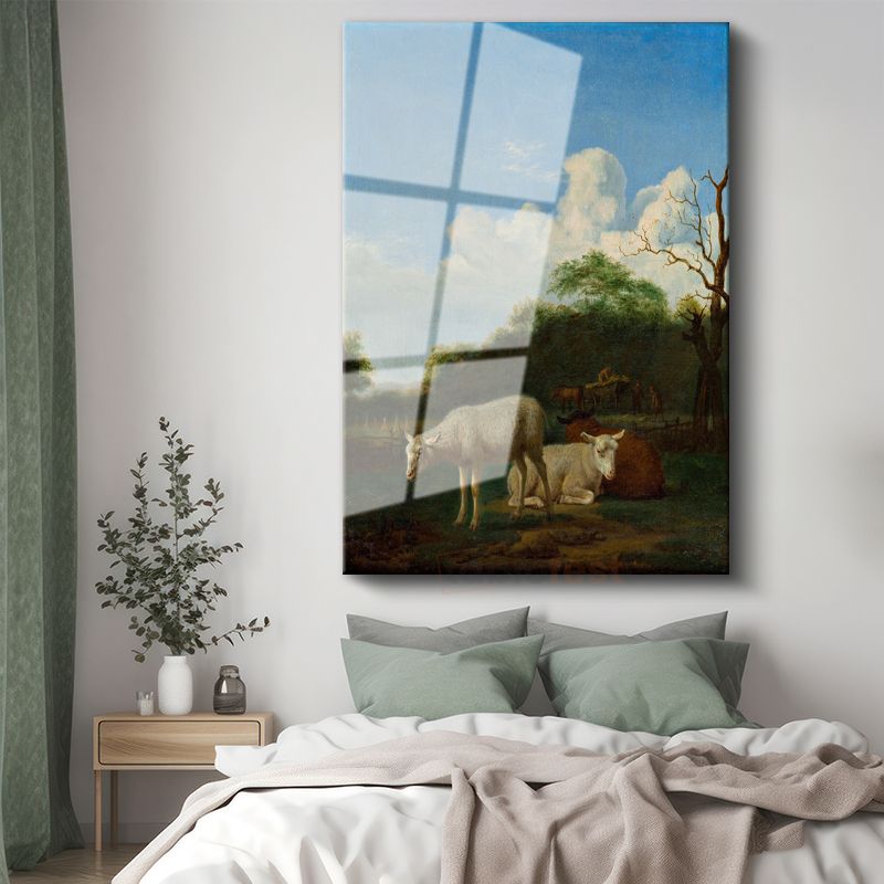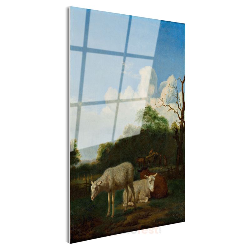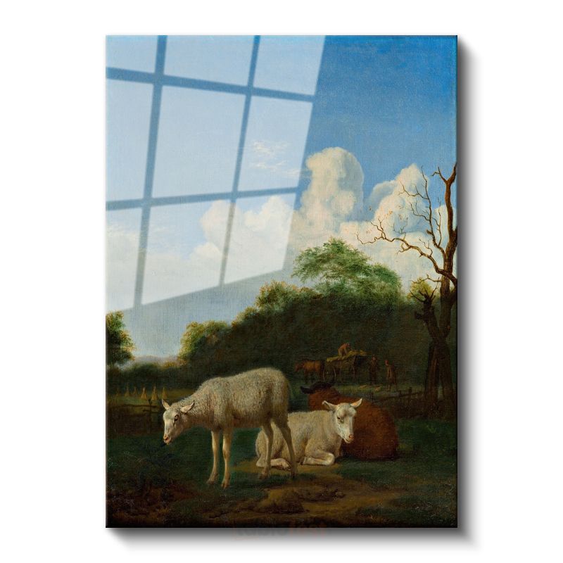 Adriaen van de Velde - Kırsal Manzarada Koyunlar Cam Tablo