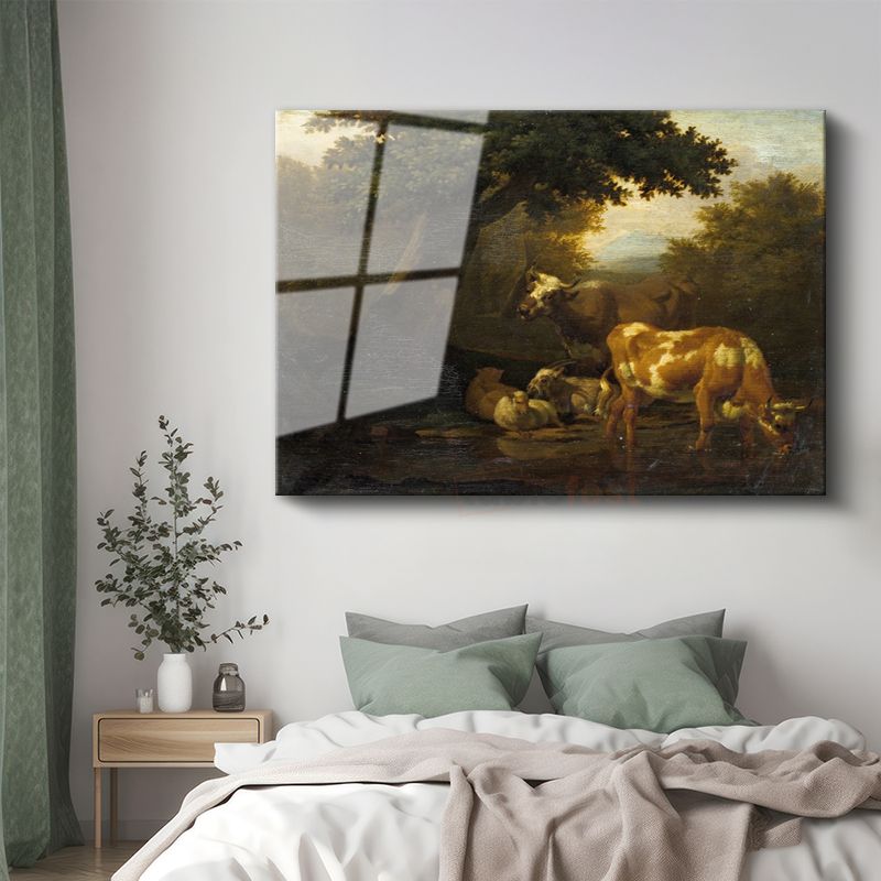 Aelbert Cuyp - Nehir Kenarında Sığırlar Cam Tablo