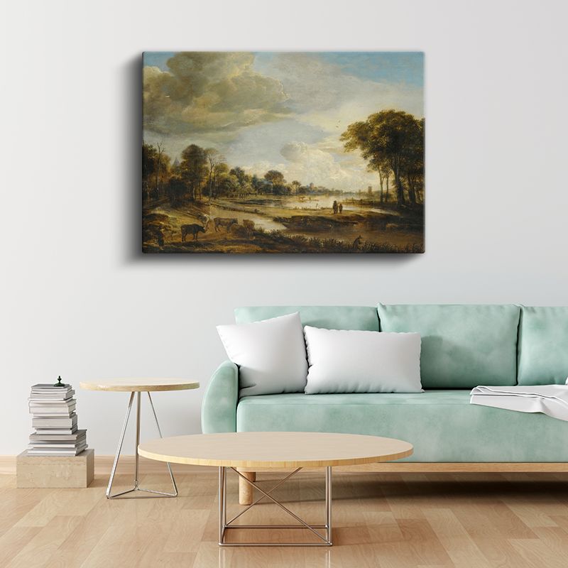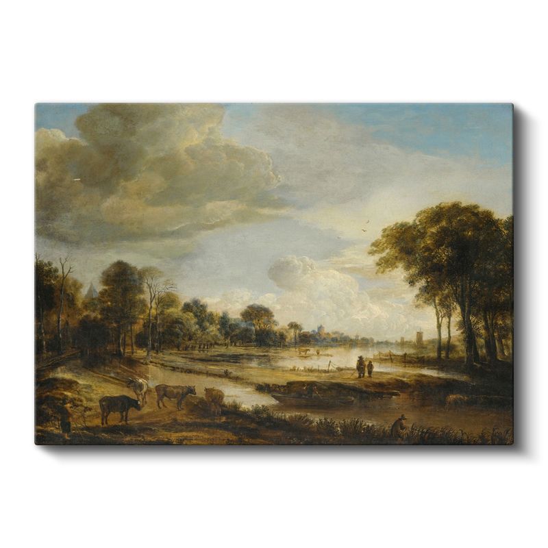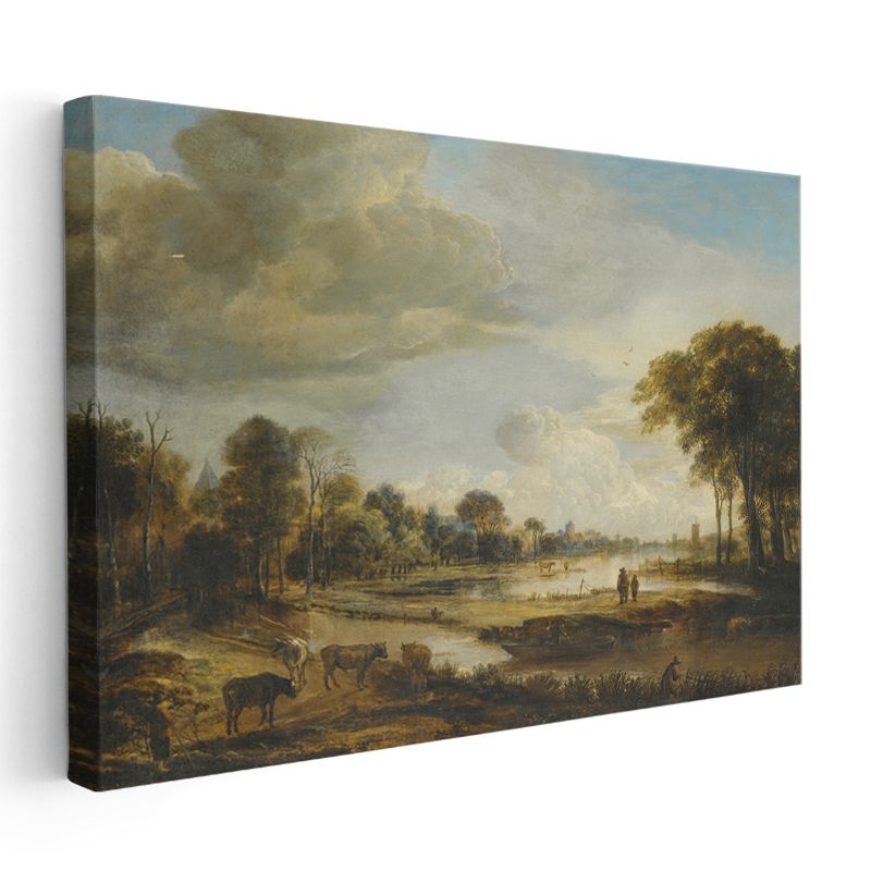 Aert van der Neer - Nehir Kıyısı Manzarası Kanvas Tablo