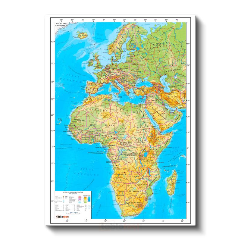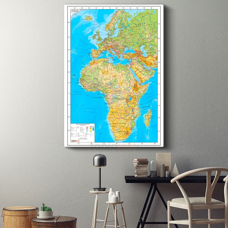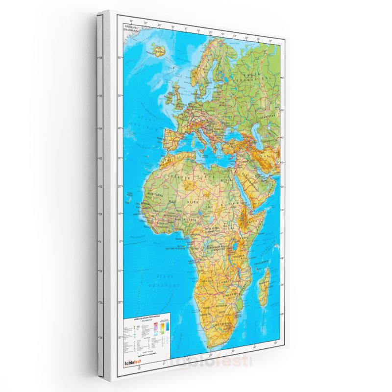 Afrika & Avrupa - Fiziki Haritası Kanvas Tablo