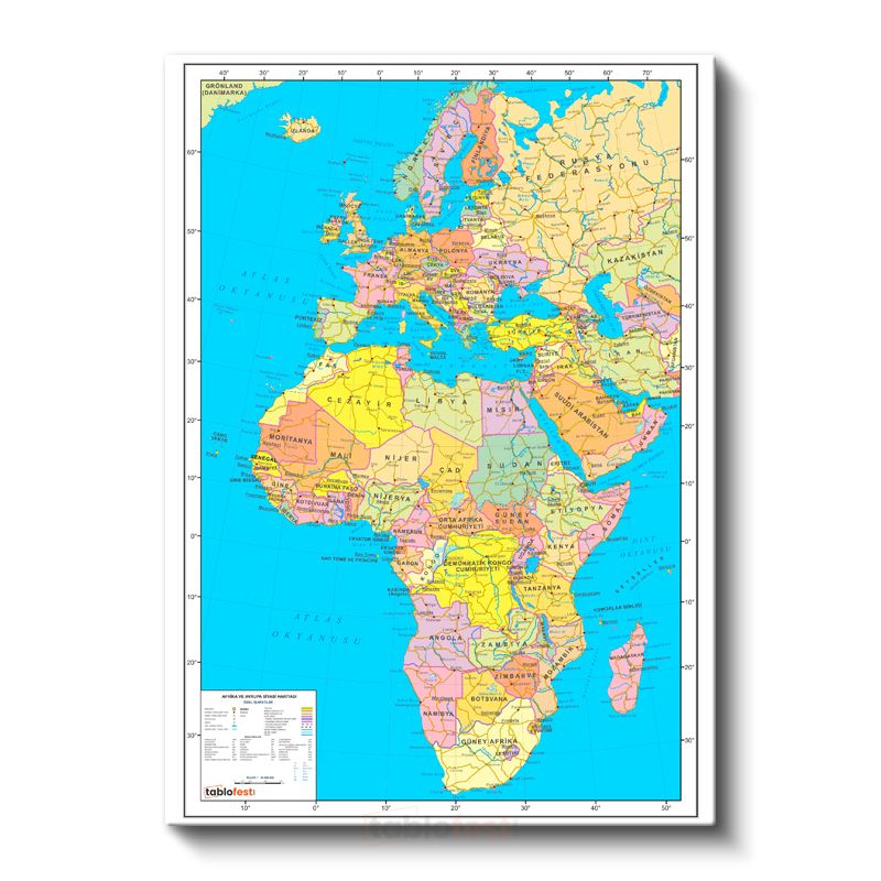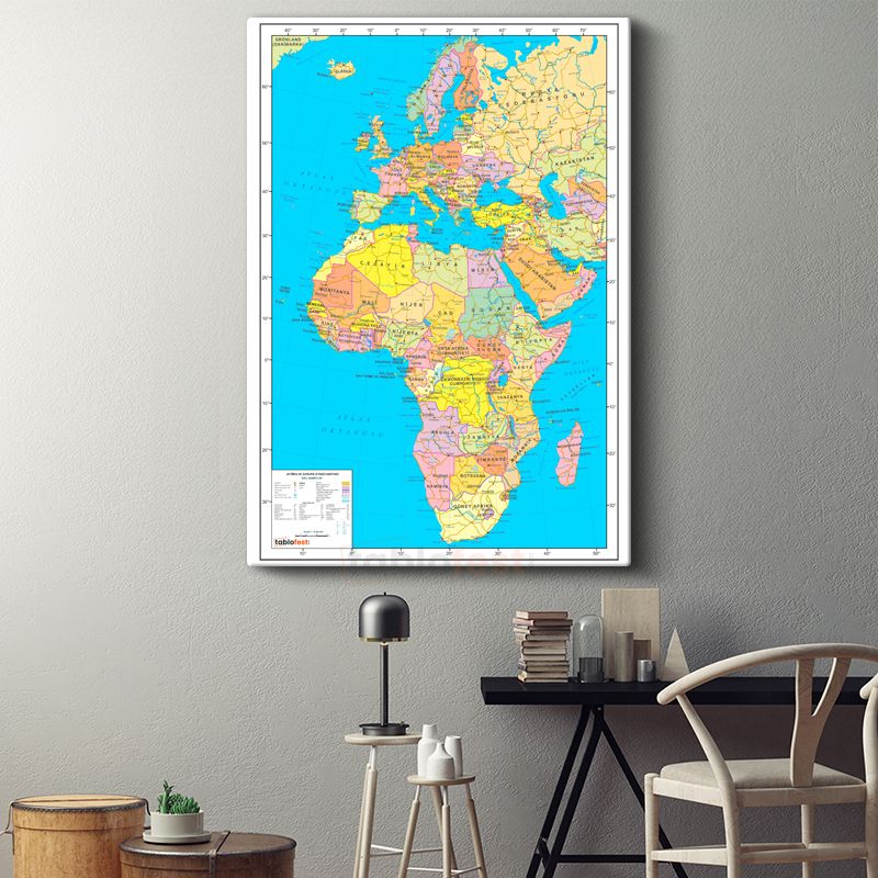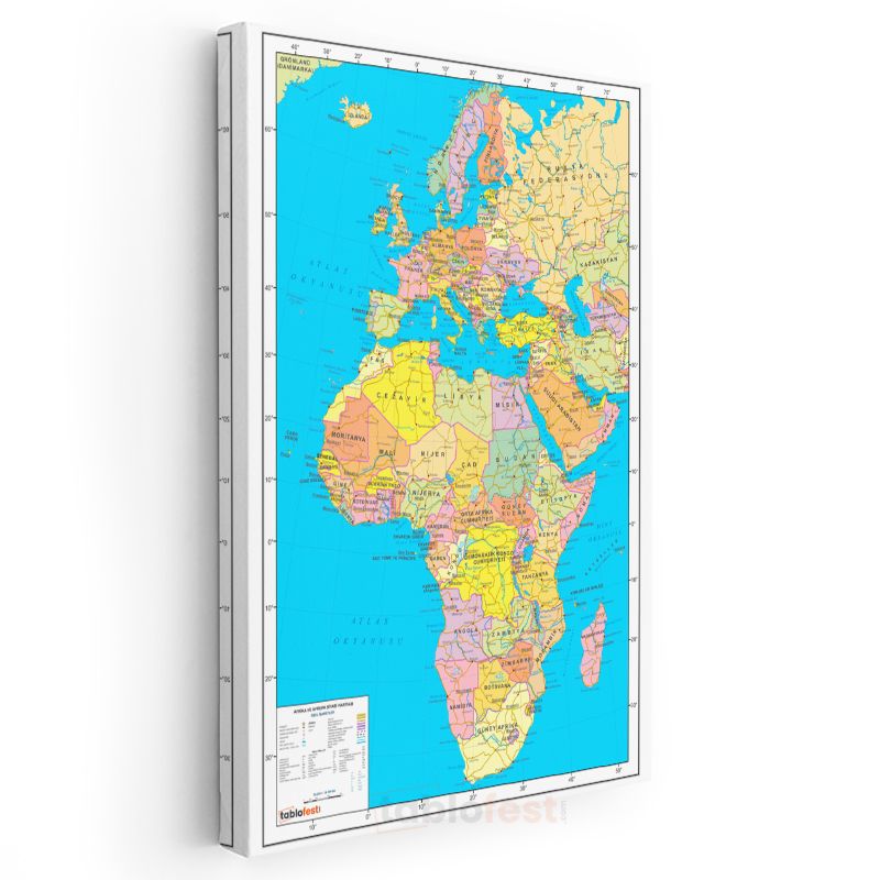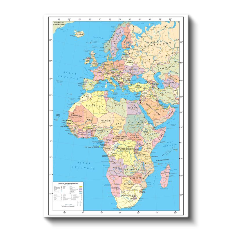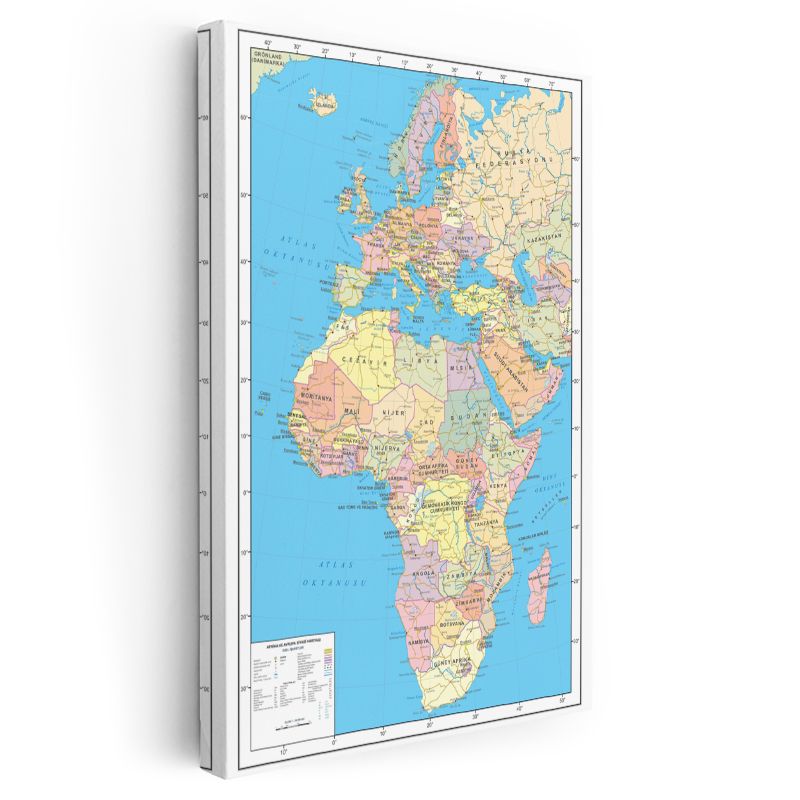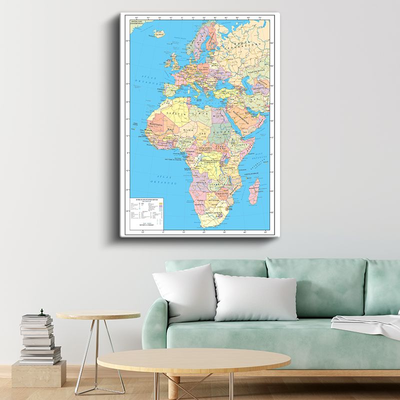 Afrika & Avrupa - Siyasi Haritası Kanvas Tablo