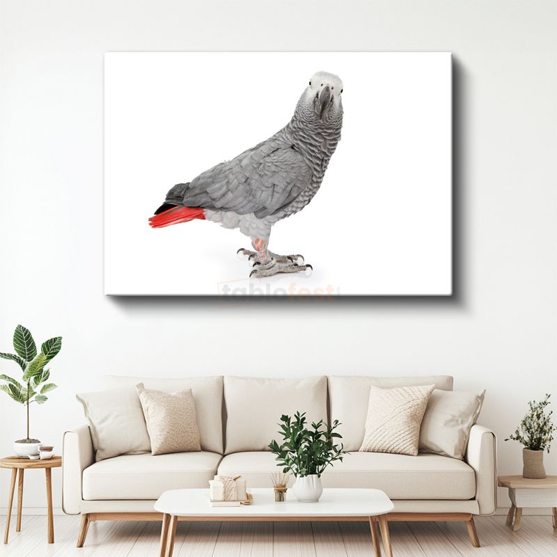 Afrika Gri Papağanı - Kırmızı Kuyruklu Egzotik Kuş Kanvas Tablo