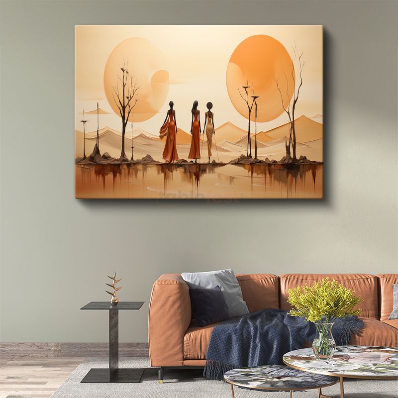 Afrika Silüetleri - Sıcak Tonlarda Soyut Manzara Kanvas Tablo