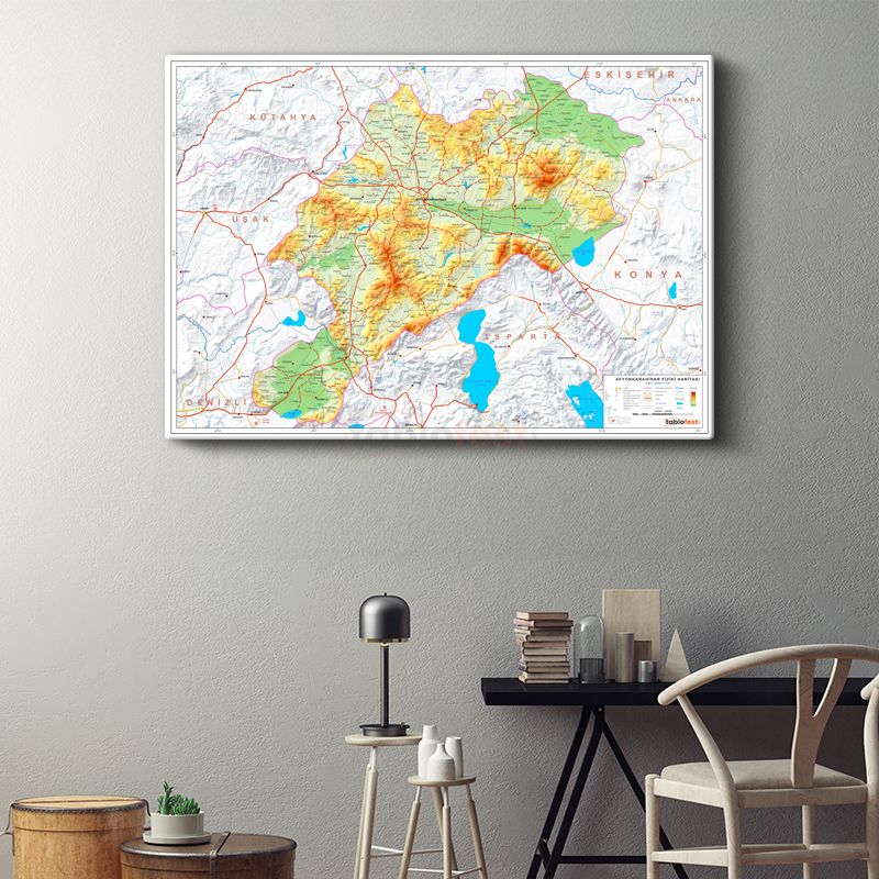 Afyonkarahisar - Fiziki Haritası Kanvas Tablo