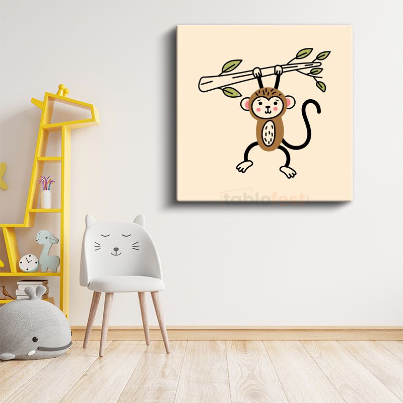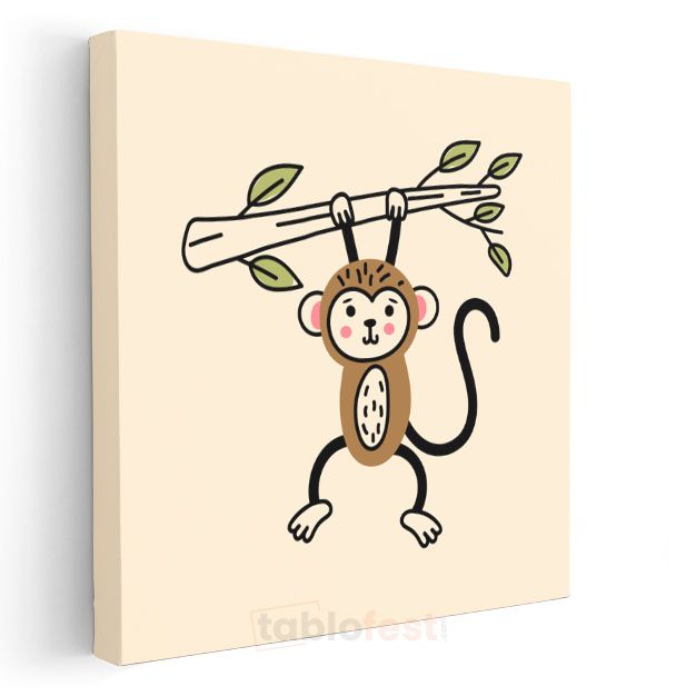 Ağaç Dalında Maymun - Sevimli Orman Sakini Kanvas Tablo