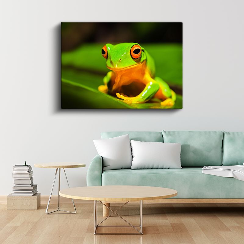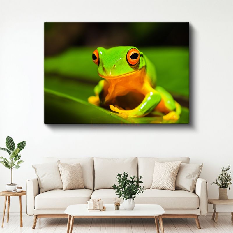 Ağaç Kurbağası - Turuncu Ayaklı Yeşil Kahraman Kanvas Tablo