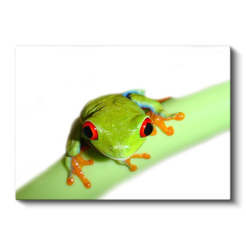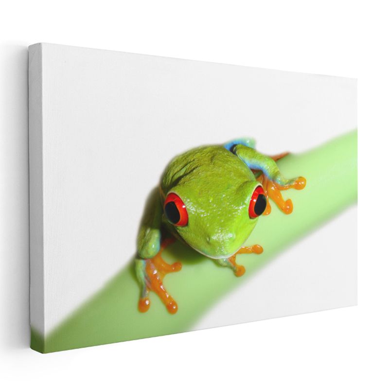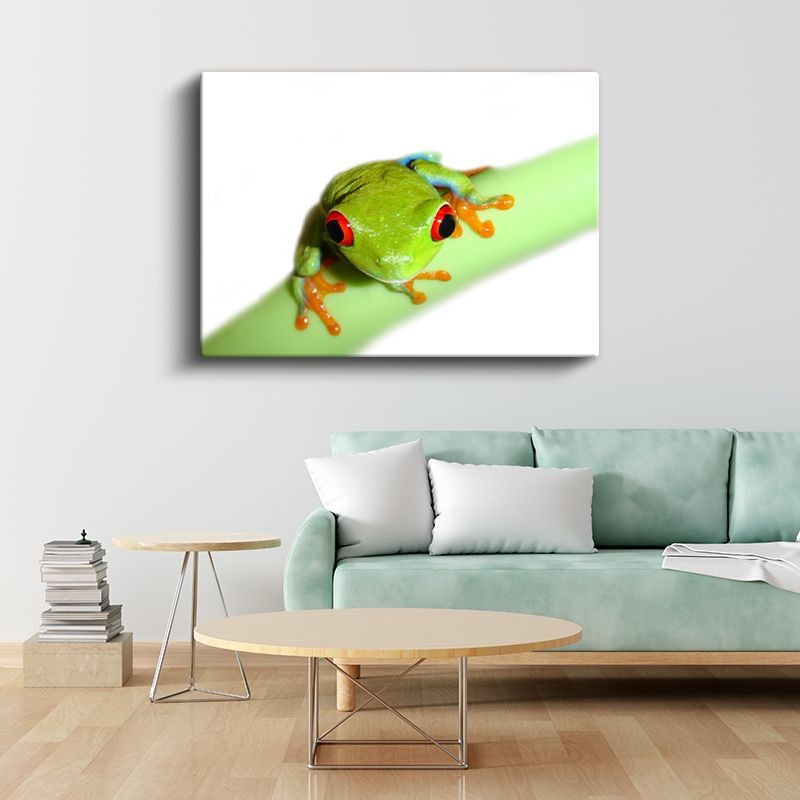 Ağaç Kurbağası - Yeşil Dalda Turuncu Ayaklı Dost Kanvas Tablo