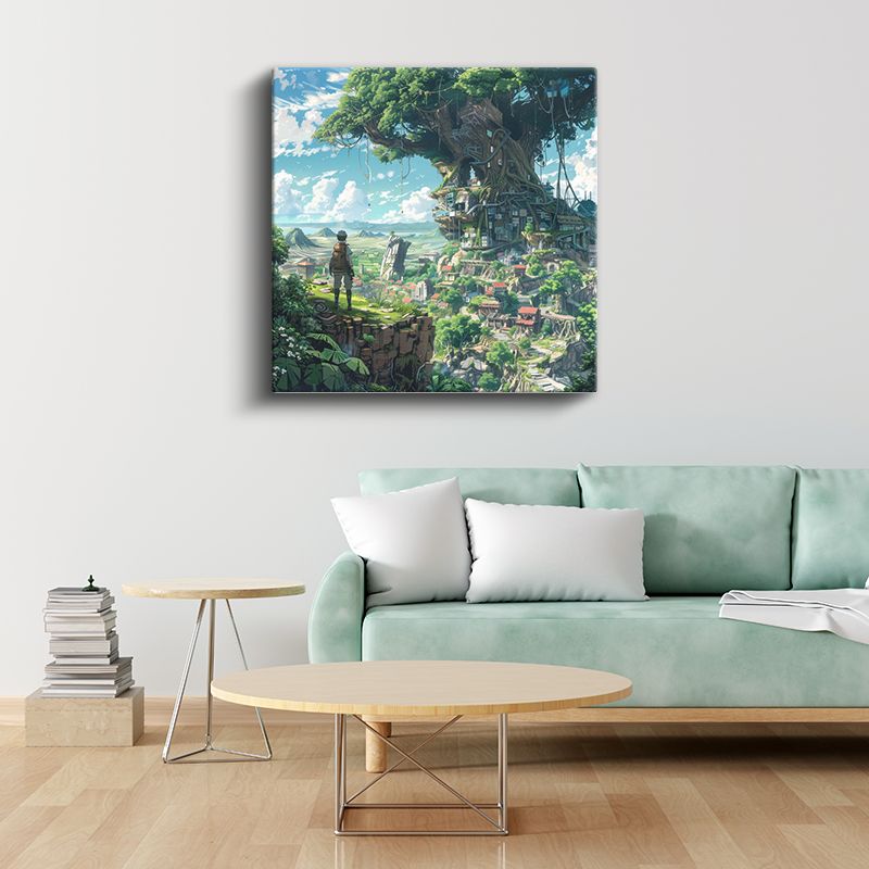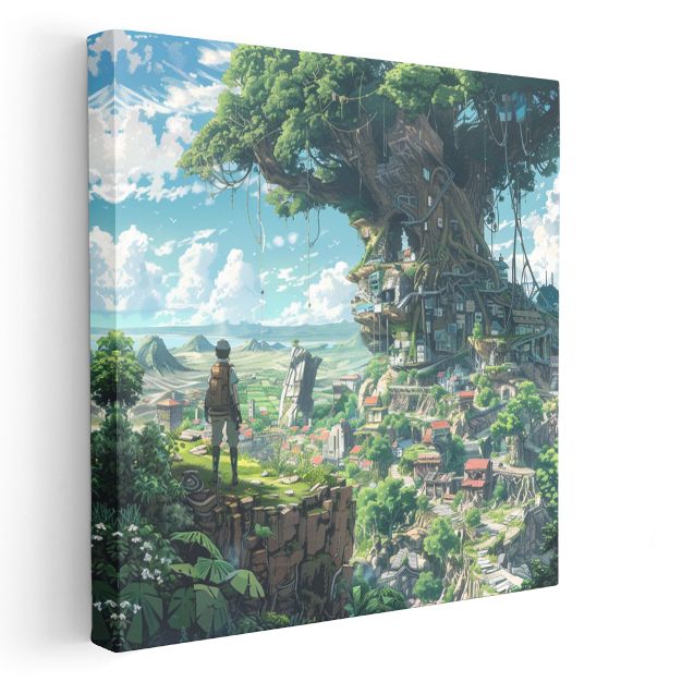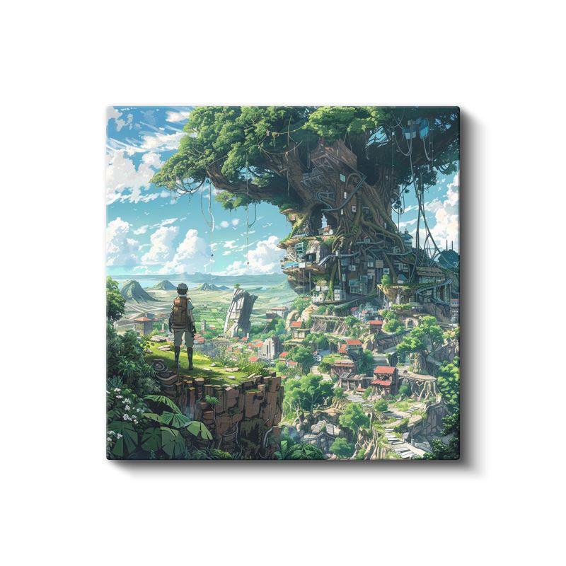 Ağaç Şehri - Fantastik Manzara Anime Kanvas Tablo