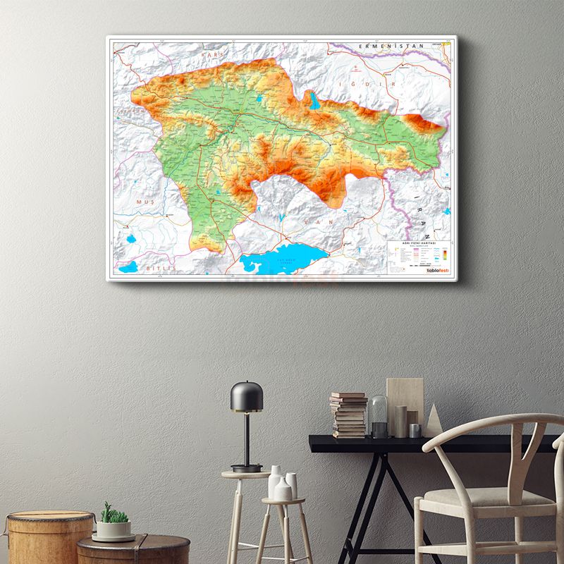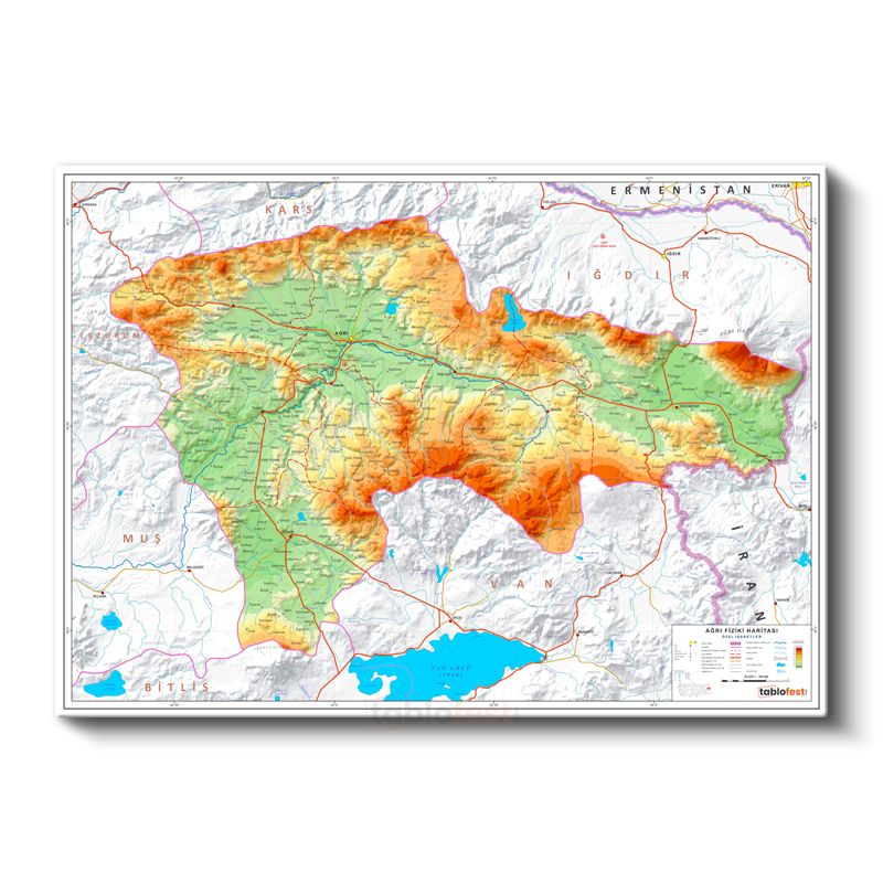 Ağrı - Fiziki Haritası Kanvas Tablo