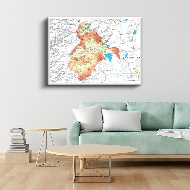 Ağrı - Fiziki Haritası Kanvas Tablo