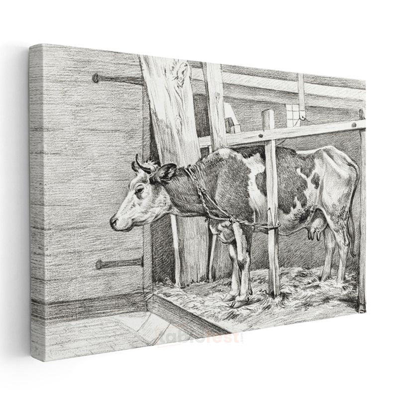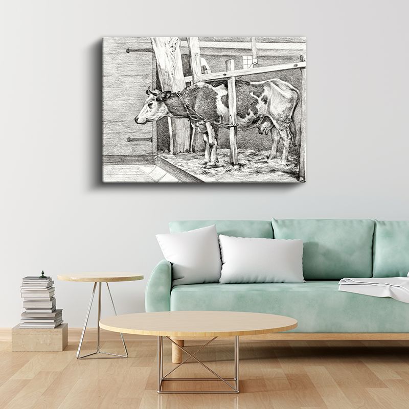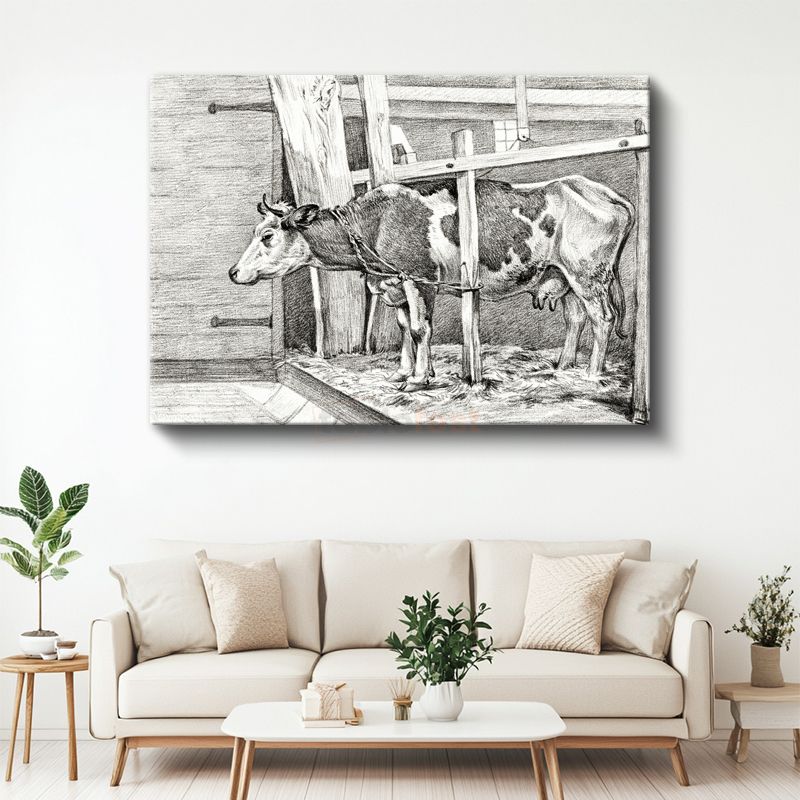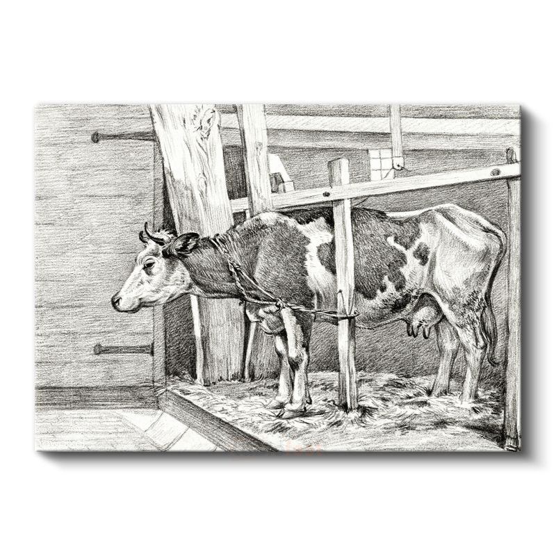 Ahırdaki İnek - Çiftlik Yaşamından Kesit Kanvas Tablo