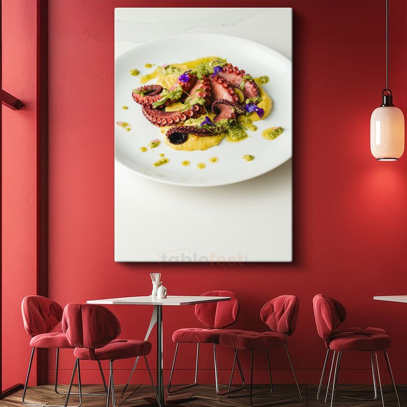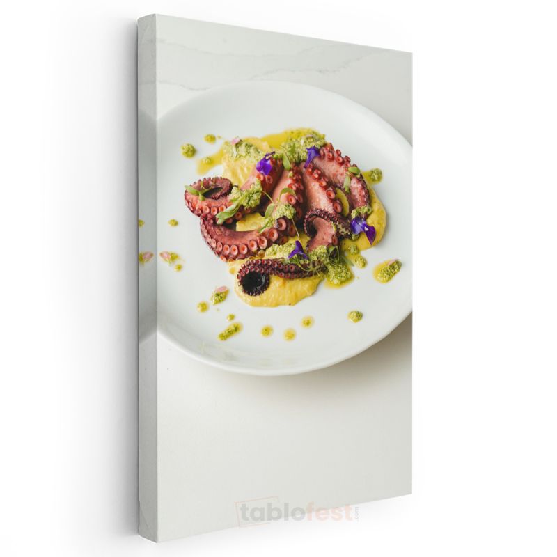 Ahtapot Tabağı - Gurme Sunum ve Renkli Soslar Kanvas Tablo