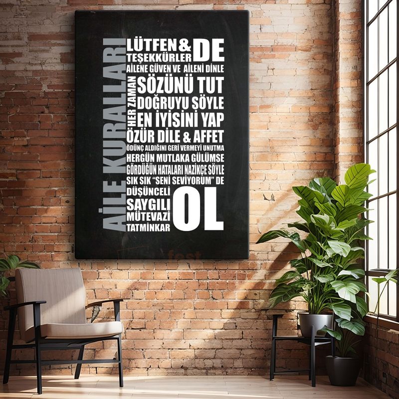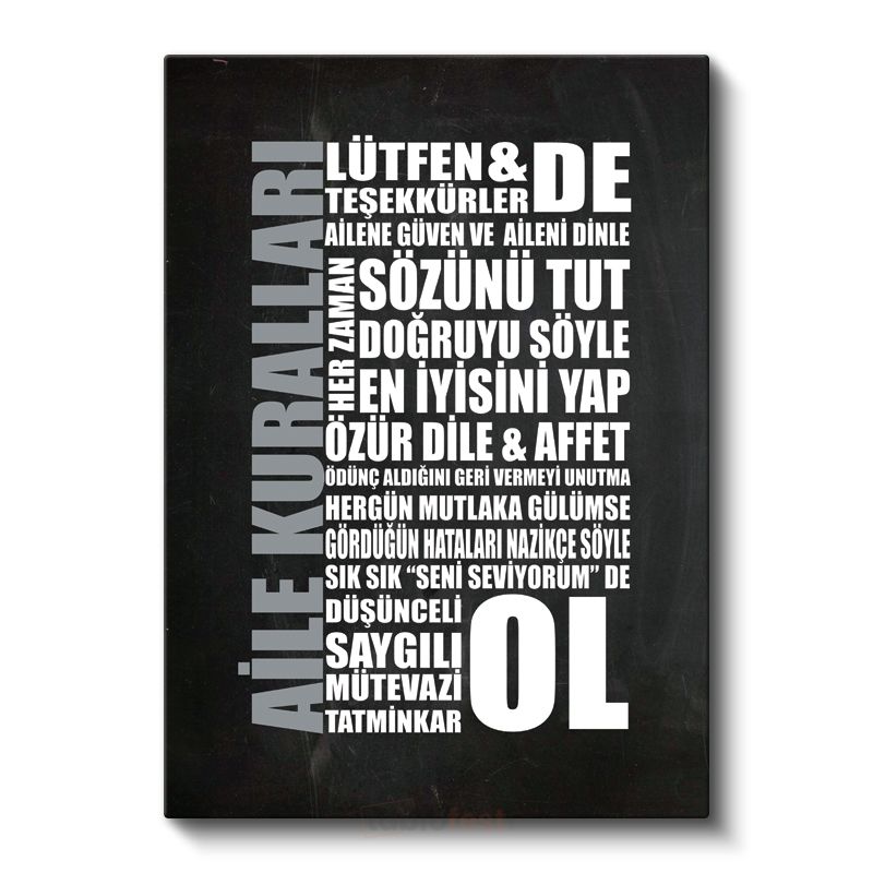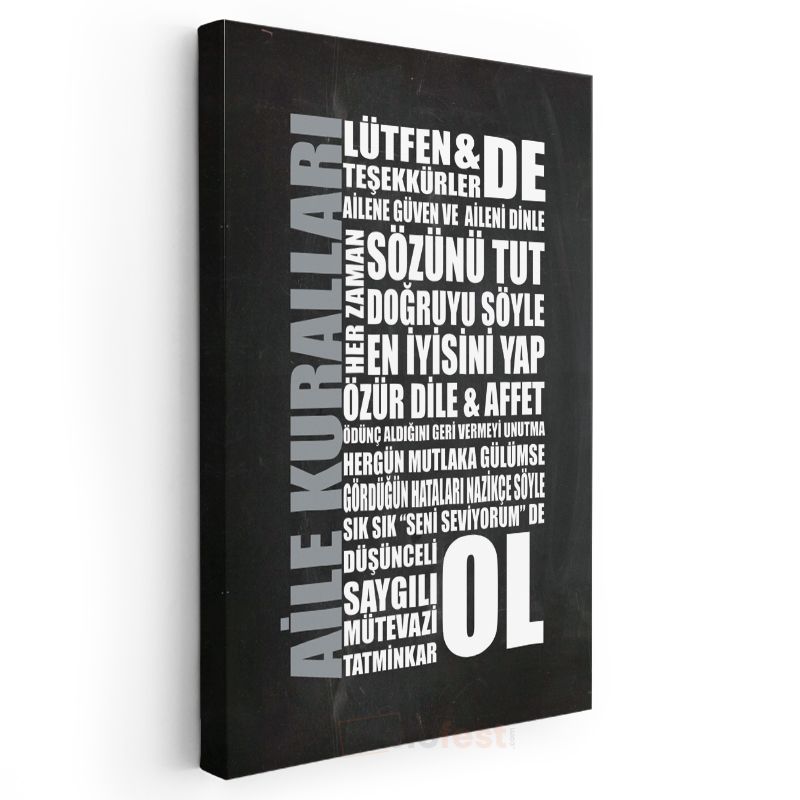 Aile Kuralları - Yaşam Değerleri Hatırlatması Kanvas Tablo