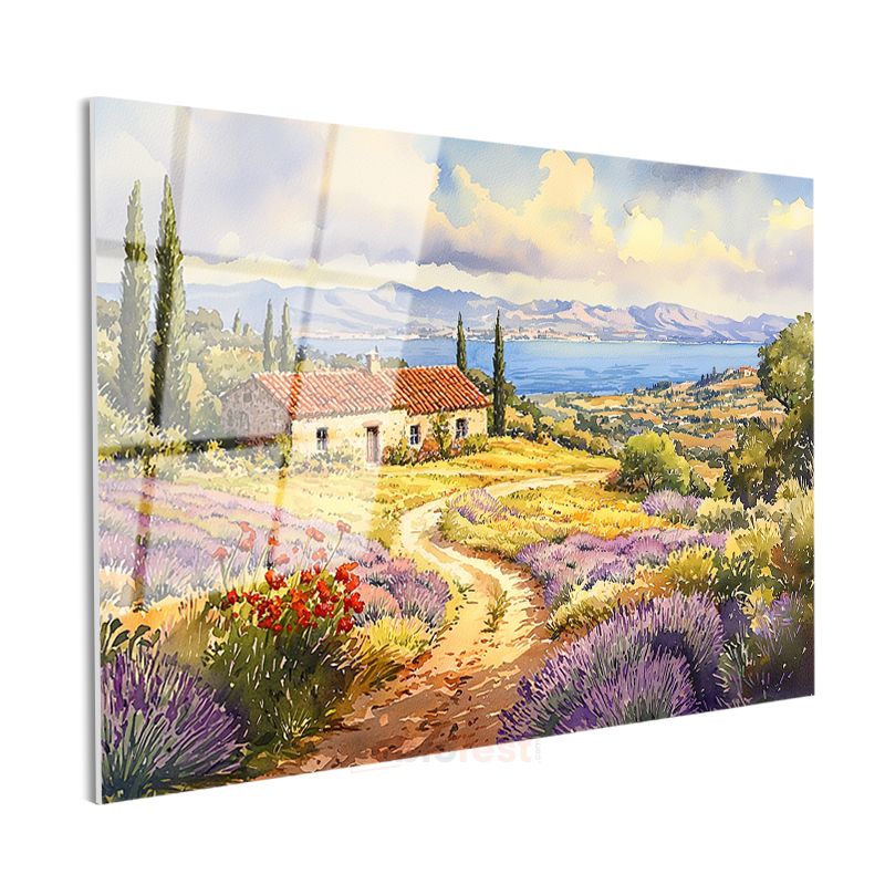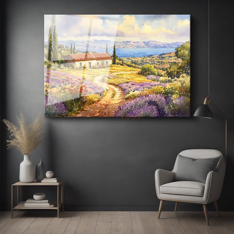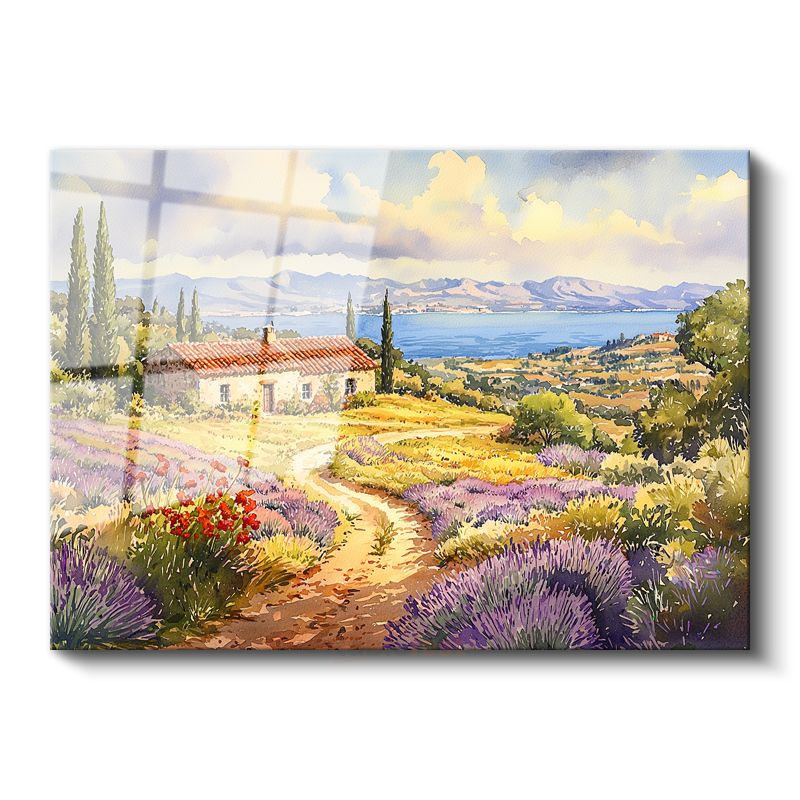Akdeniz Çiftliği - Lavanta Tarlaları ve Deniz Manzaralı Kır Evi Cam Tablo