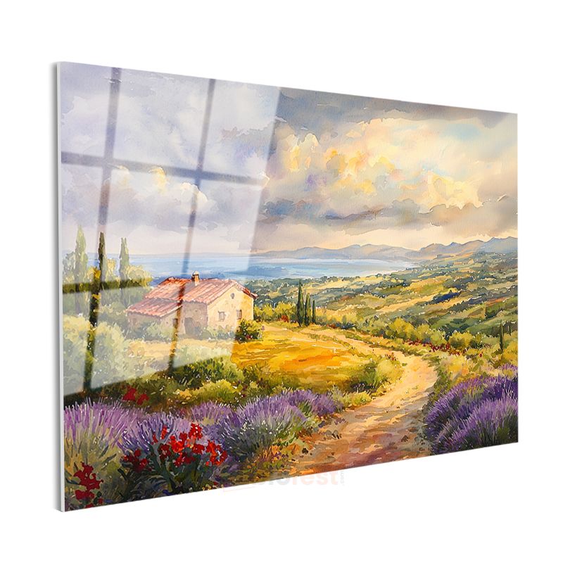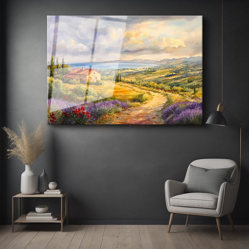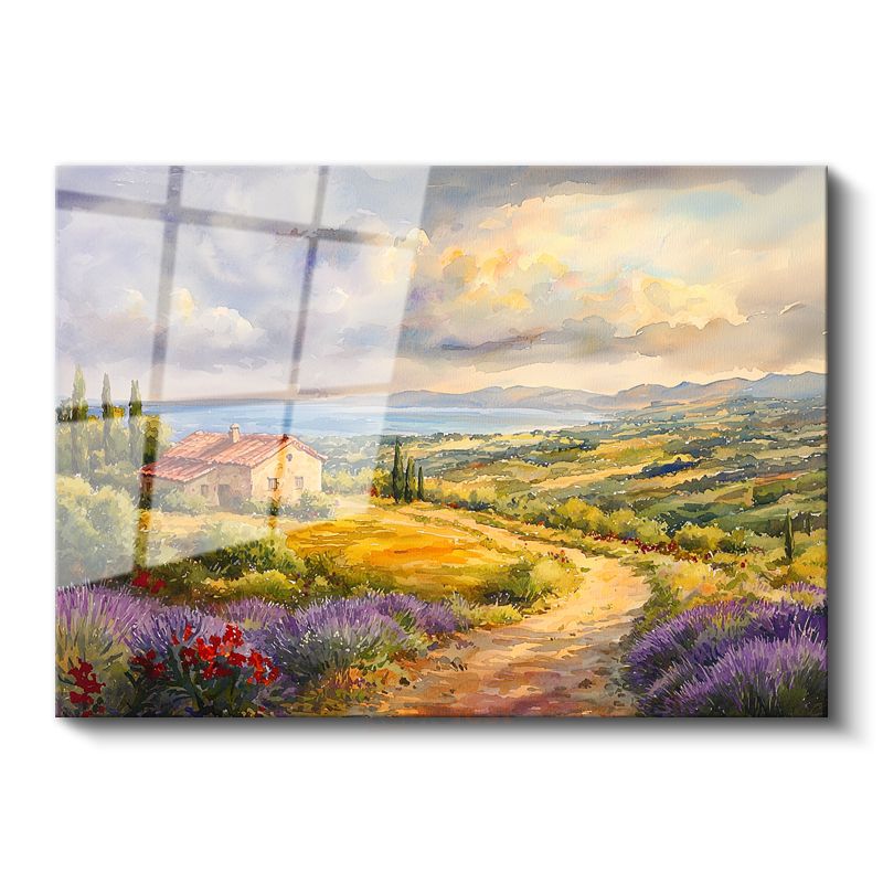 Akdeniz Çiftliği - Lavanta Tarlaları ve Deniz Manzarası Cam Tablo