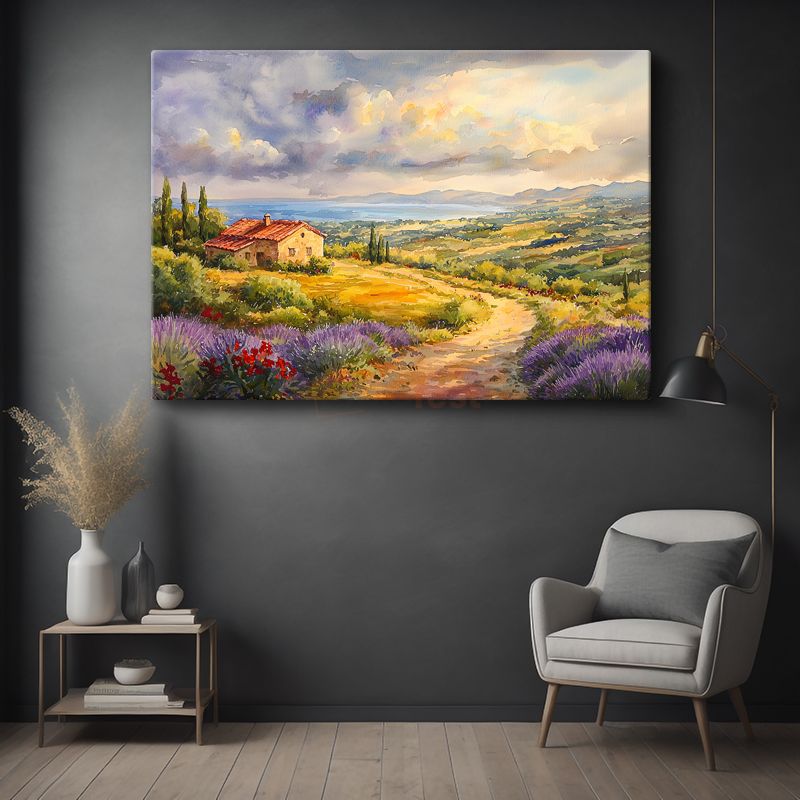 Akdeniz Çiftliği - Lavanta Tarlaları ve Deniz Manzarası Kanvas Tablo