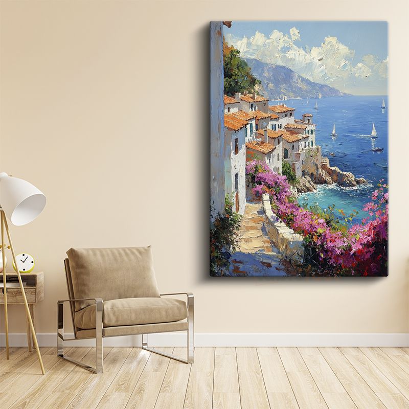 Akdeniz Evleri - Çiçekli Patika Kanvas Tablo
