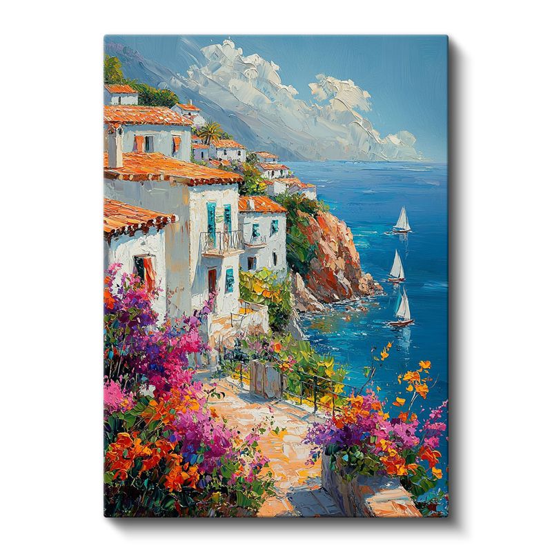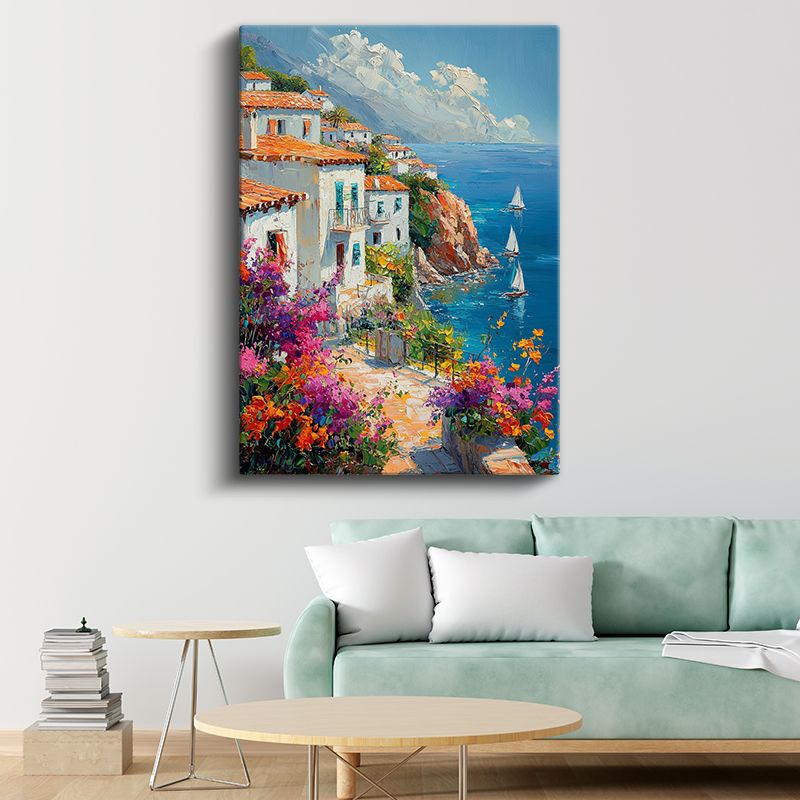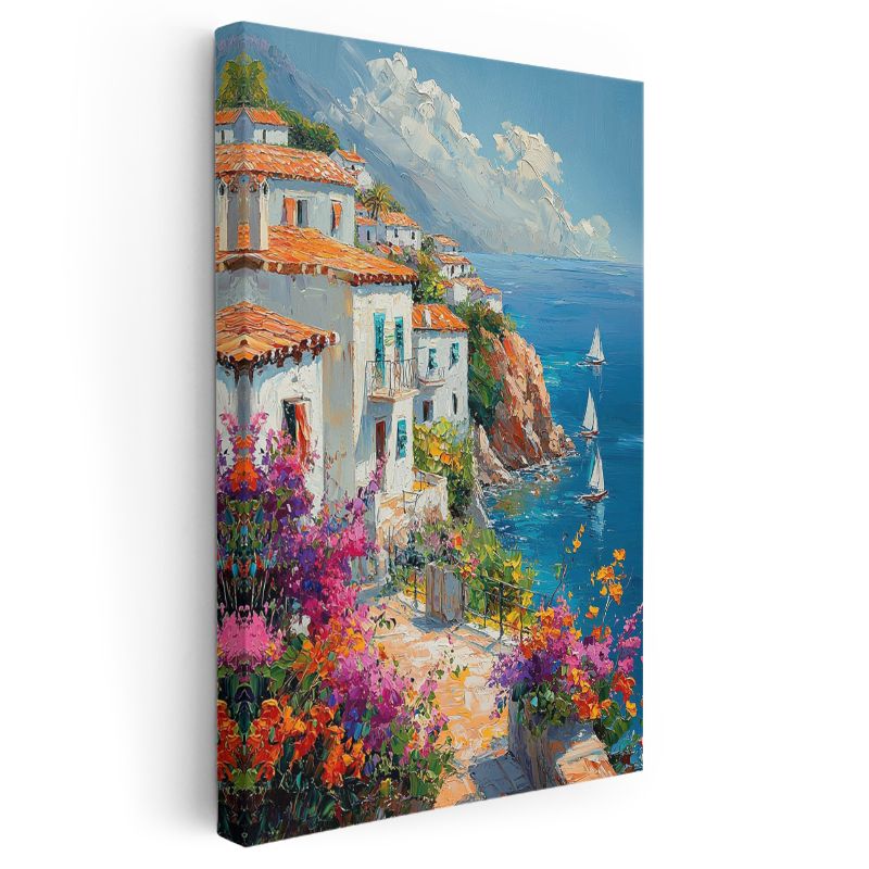 Akdeniz Evleri - Renkli Çiçekler Kanvas Tablo