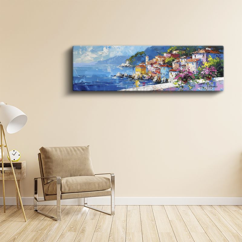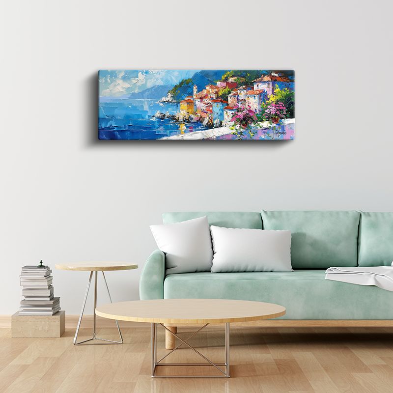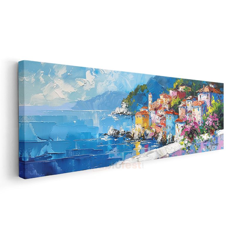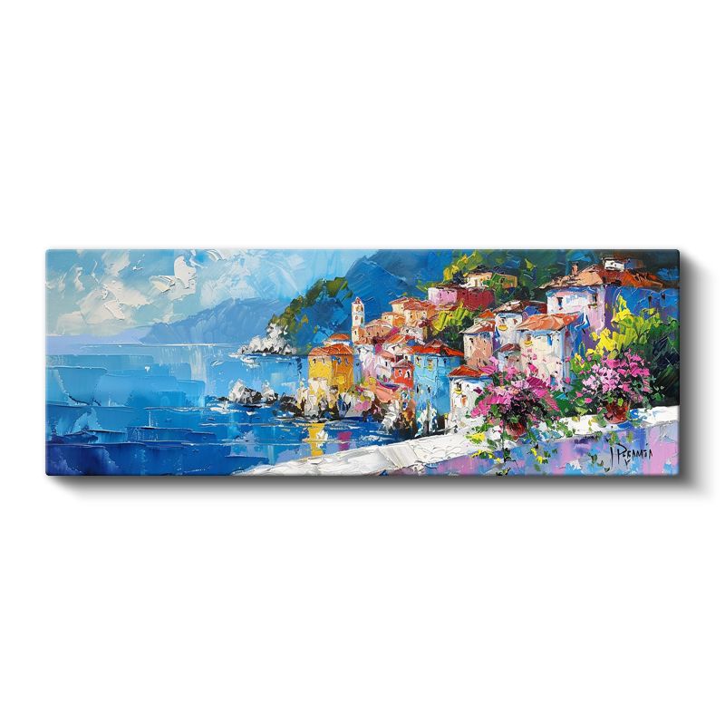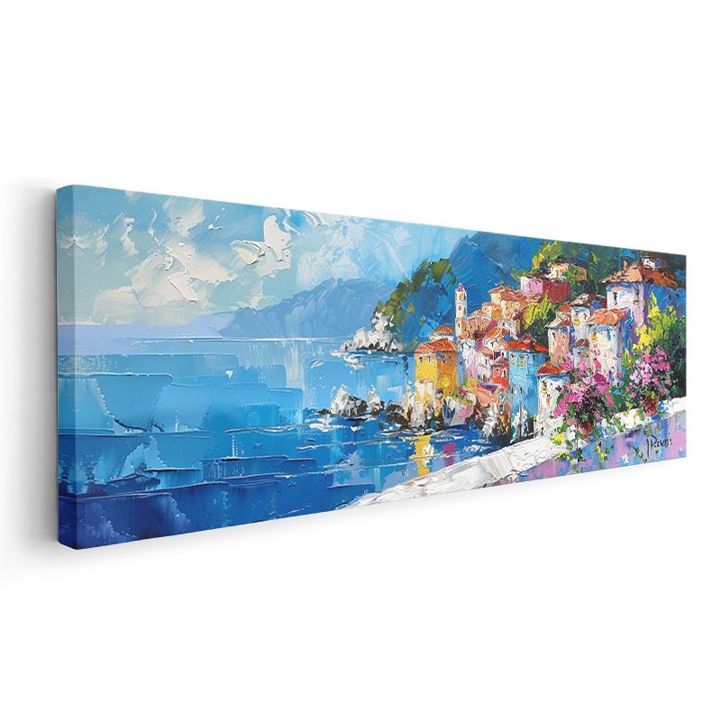 Akdeniz Kasabası - Mavi Sularda Renkli Mimari Kanvas Tablo