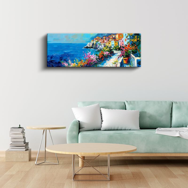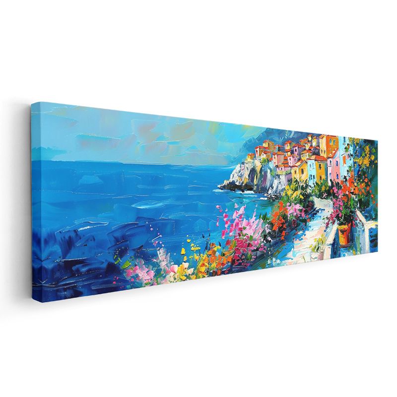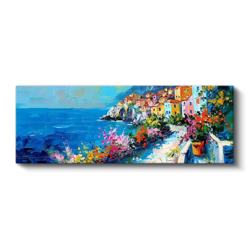 Akdeniz Kıyısı - Çiçekli Sahil Kasabası Kanvas Tablo