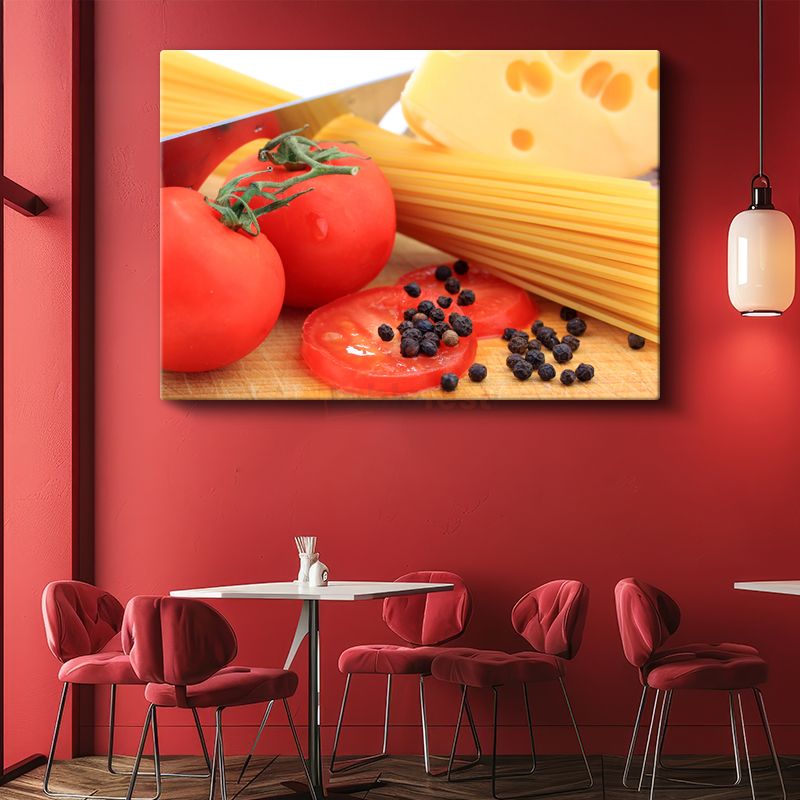 Akdeniz Lezzetleri - Domates ve Peynir Eşliğinde Makarna Kanvas Tablo