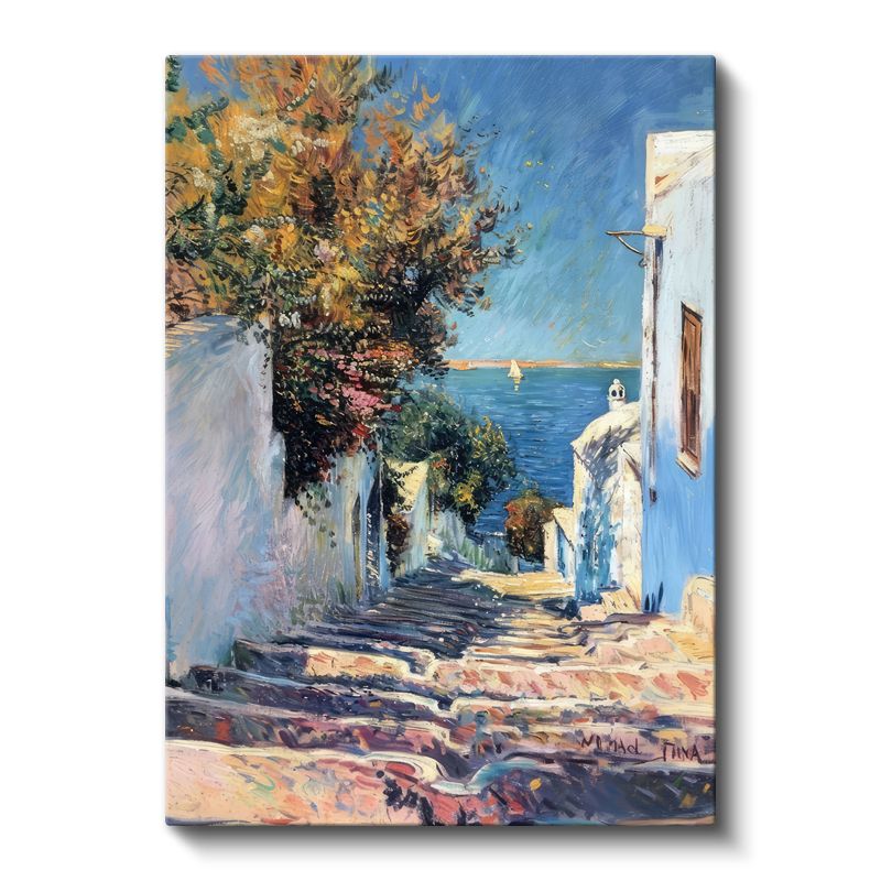 Akdeniz Sokağı - Denize İnen Merdivenler Kanvas Tablo