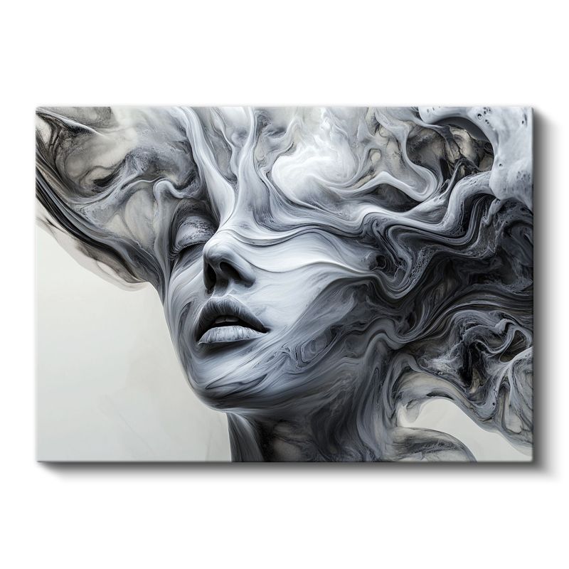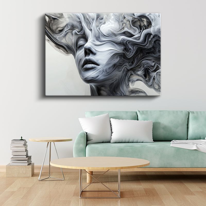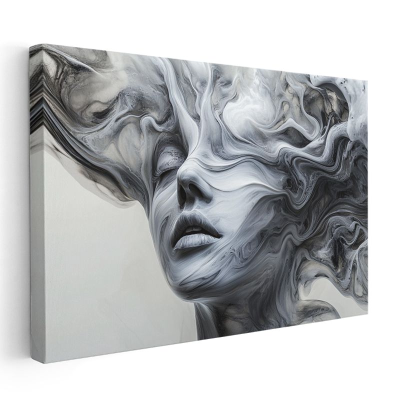 Akışkan Bilinç - Dalgalanan Çizgilerle Oluşan Kadın Portresi Kanvas Tablo