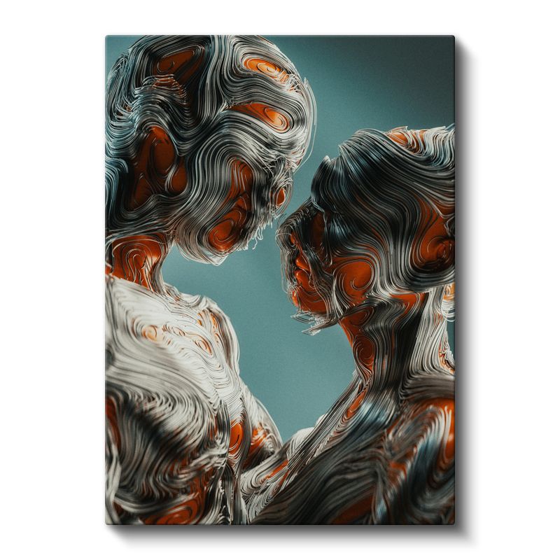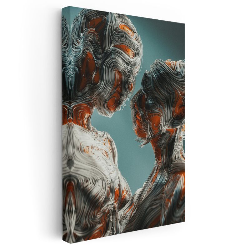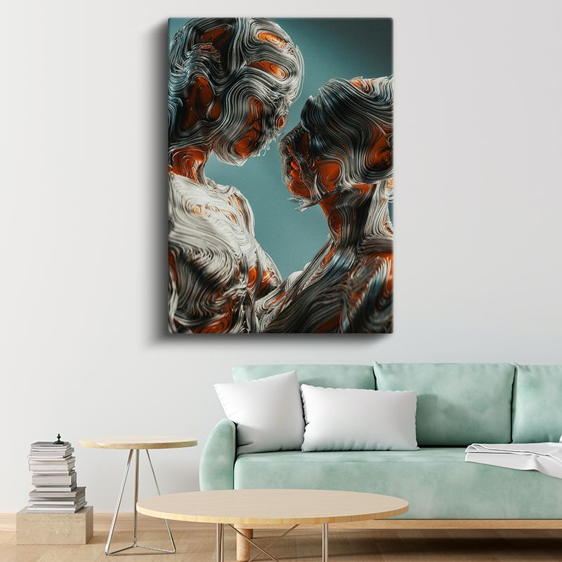 Akışkan Formlar - Modern Soyut Çift Portresi Kanvas Tablo