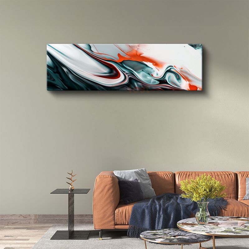 Akışkan Renkler - Turkuaz ve Turuncu Sıvı Sanat Kanvas Tablo