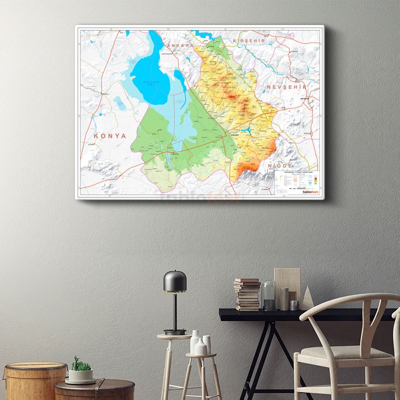 Aksaray - Fiziki Haritası Kanvas Tablo