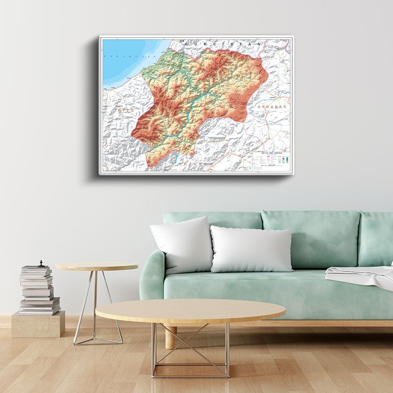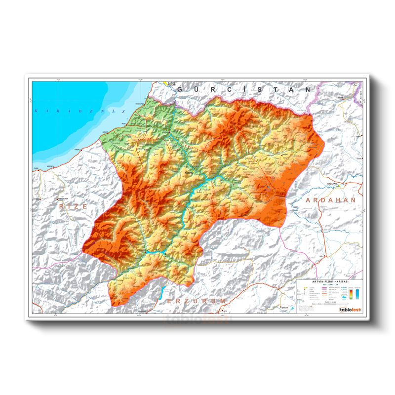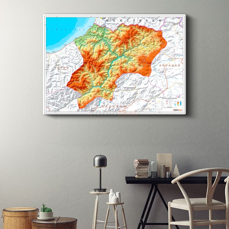 Aksaray - Fiziki Haritası Kanvas Tablo