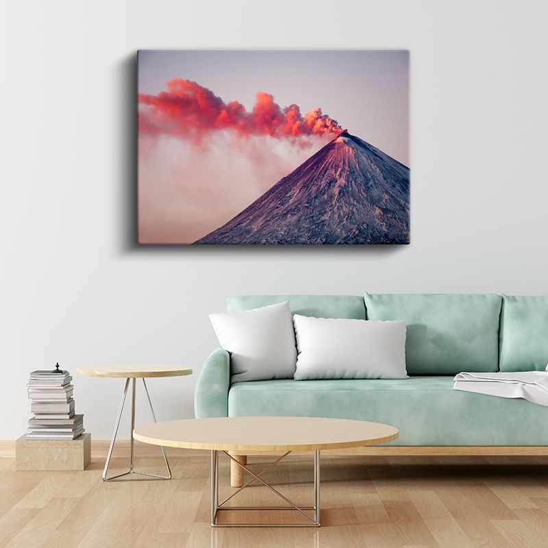 Aktif Yanardağ - Kızıl Dumanlar Saçan Volkanik Güzellik Kanvas Tablo