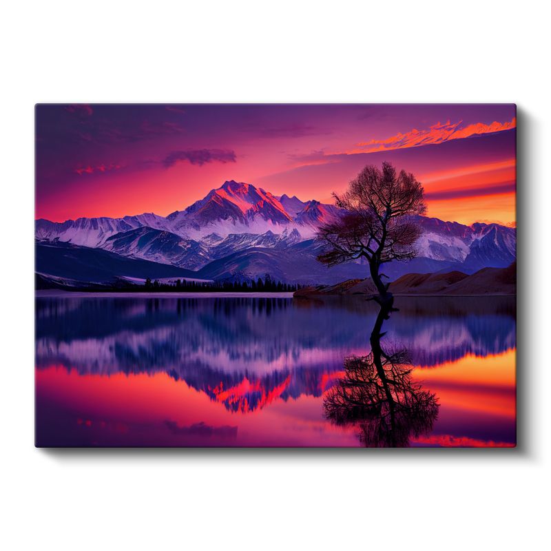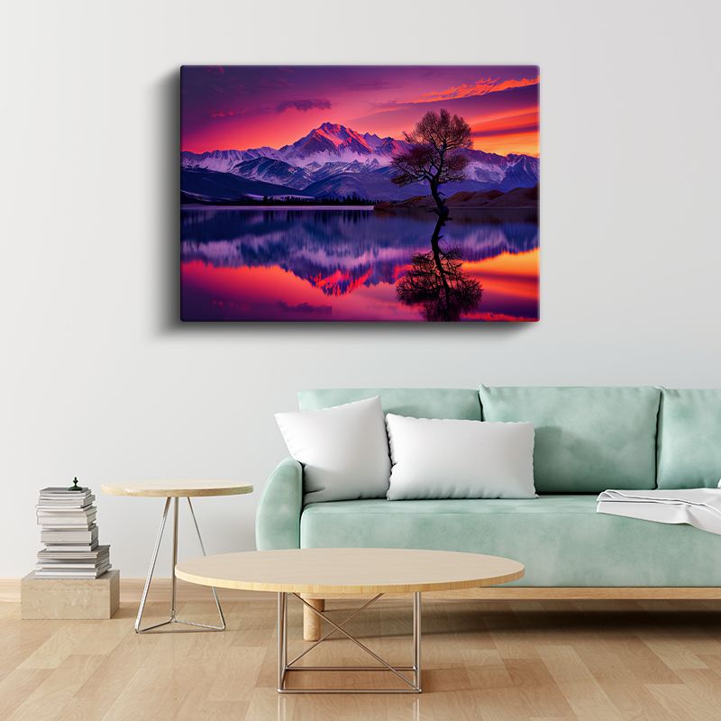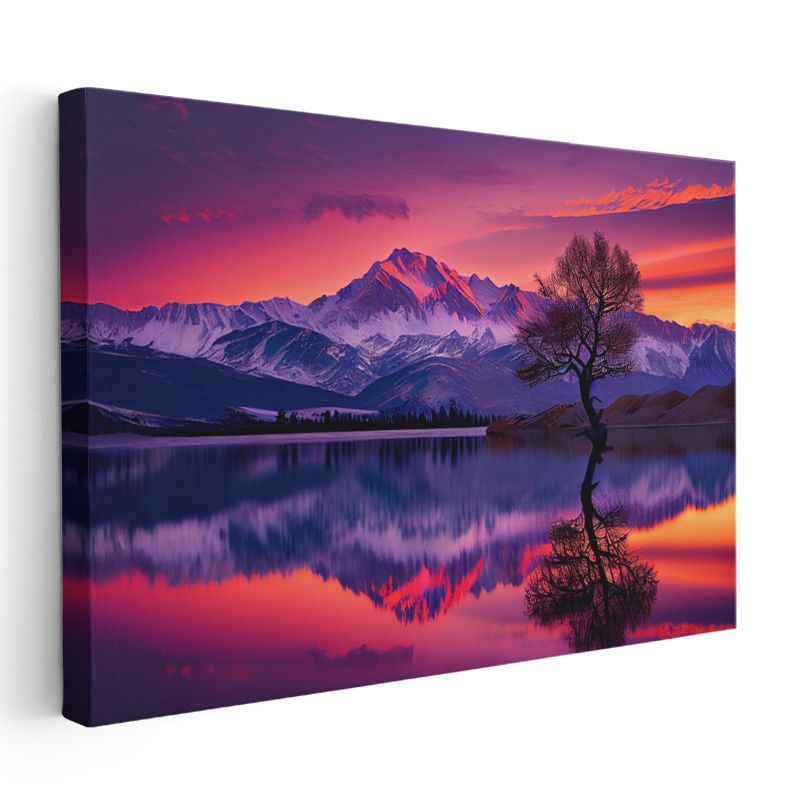 Alacakaranlık Dağları - Mor Gökyüzü Altında Yalnız Ağaç Kanvas Tablo