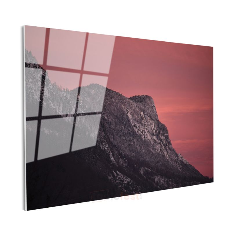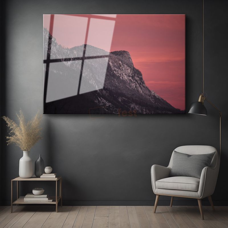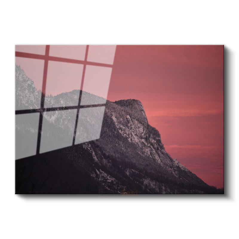 Alacakaranlık Dağları - Pembe Gökyüzünün Altında Heybetli Zirve Cam Tablo