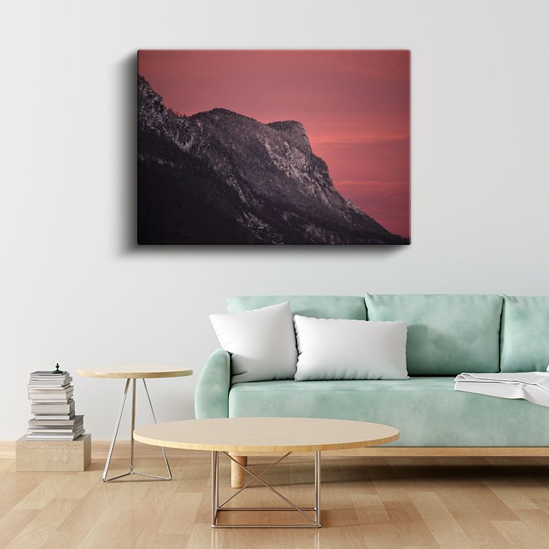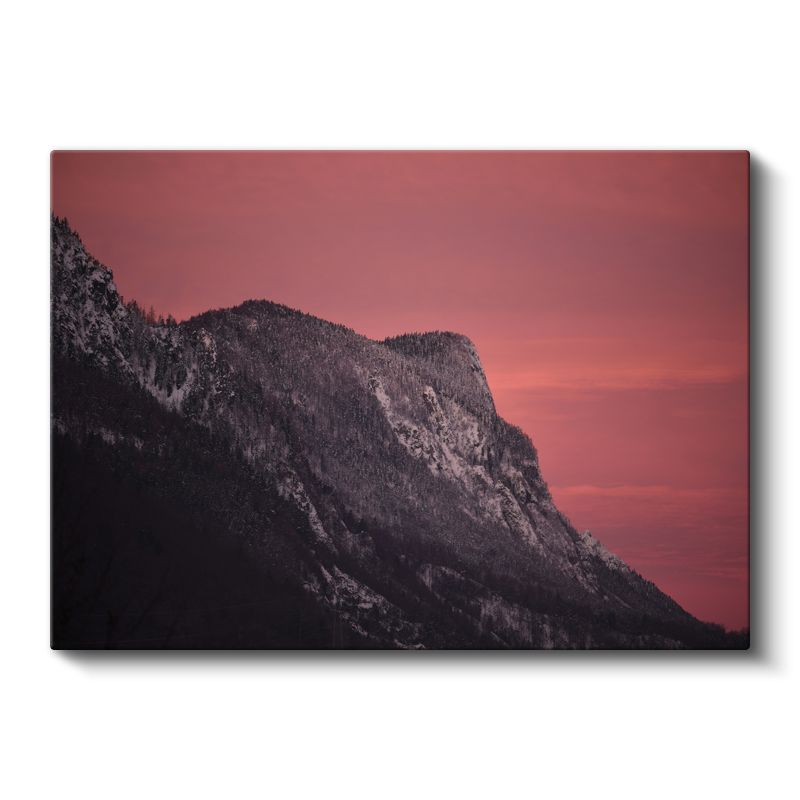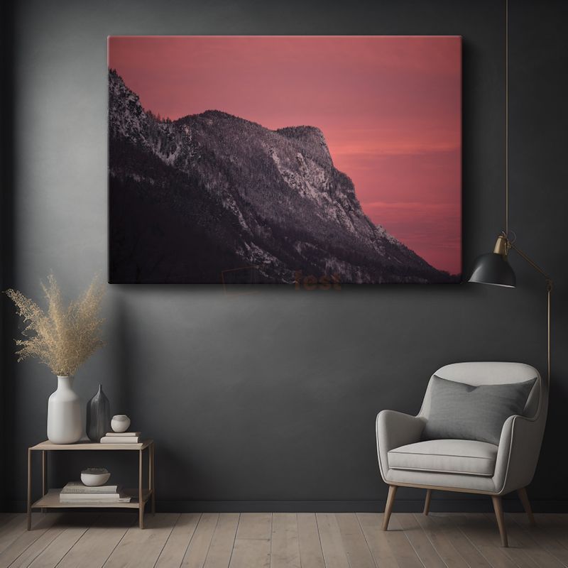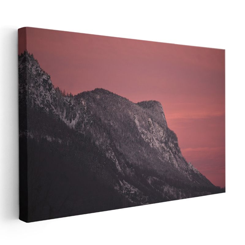 Alacakaranlık Dağları - Pembe Gökyüzünün Altında Heybetli Zirve Kanvas Tablo