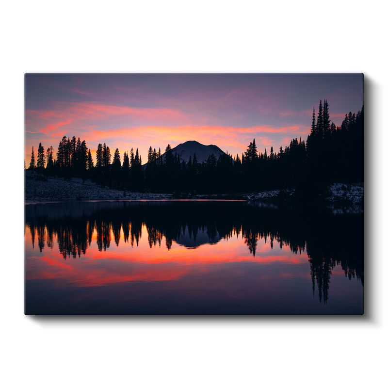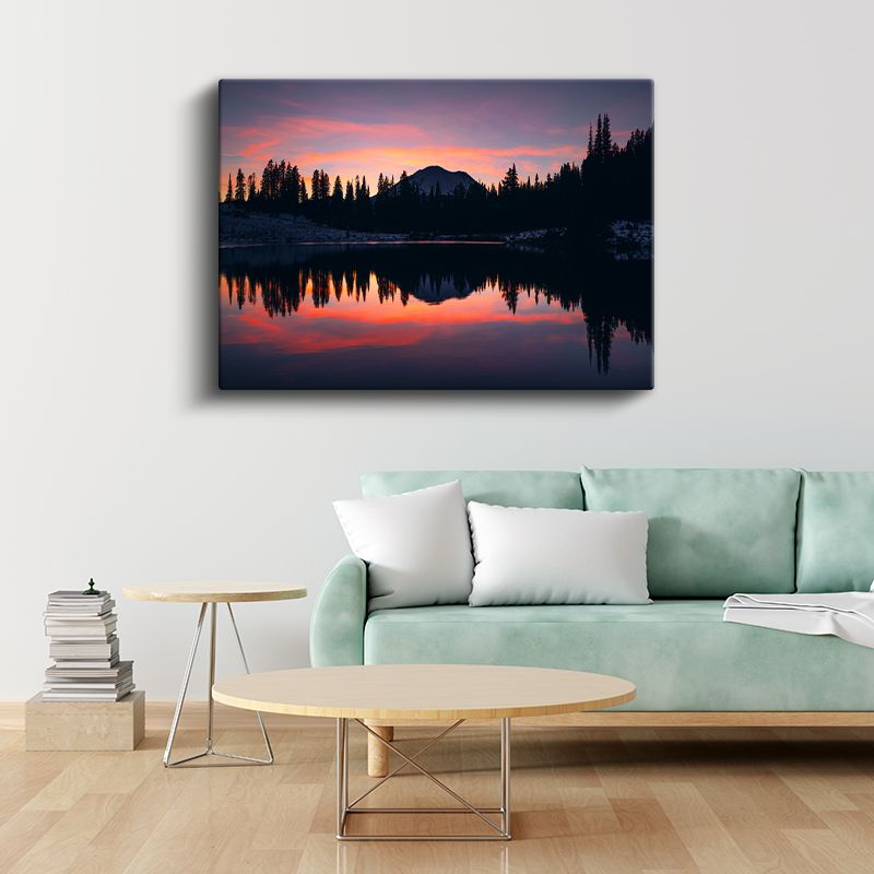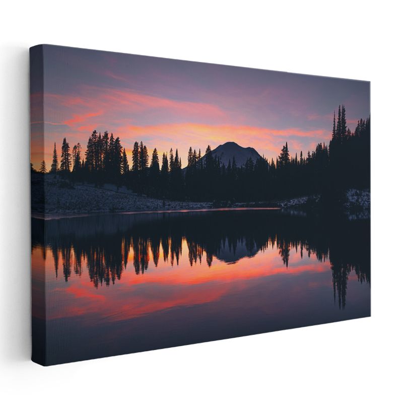 Alacakaranlık Gölü - Dağ Silüetli Yansıma Kanvas Tablo