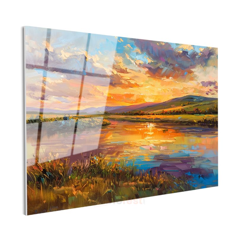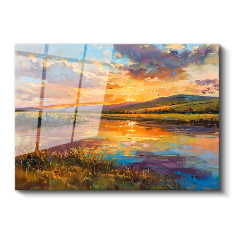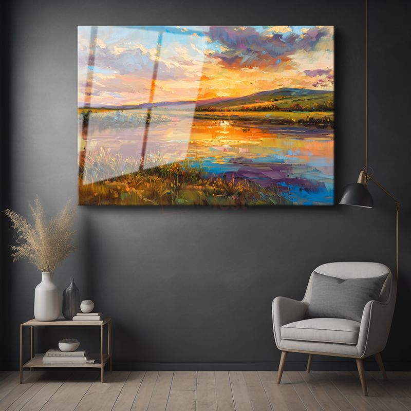 Alacakaranlık Manzarası - Göl Üzerinde Yansıyan Gün Batımı Renkleri Cam Tablo