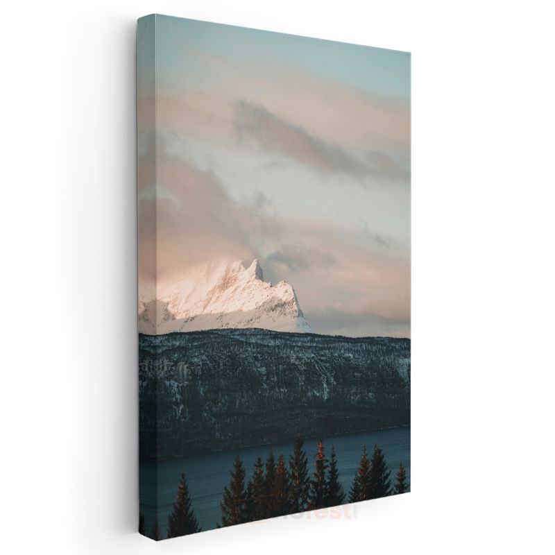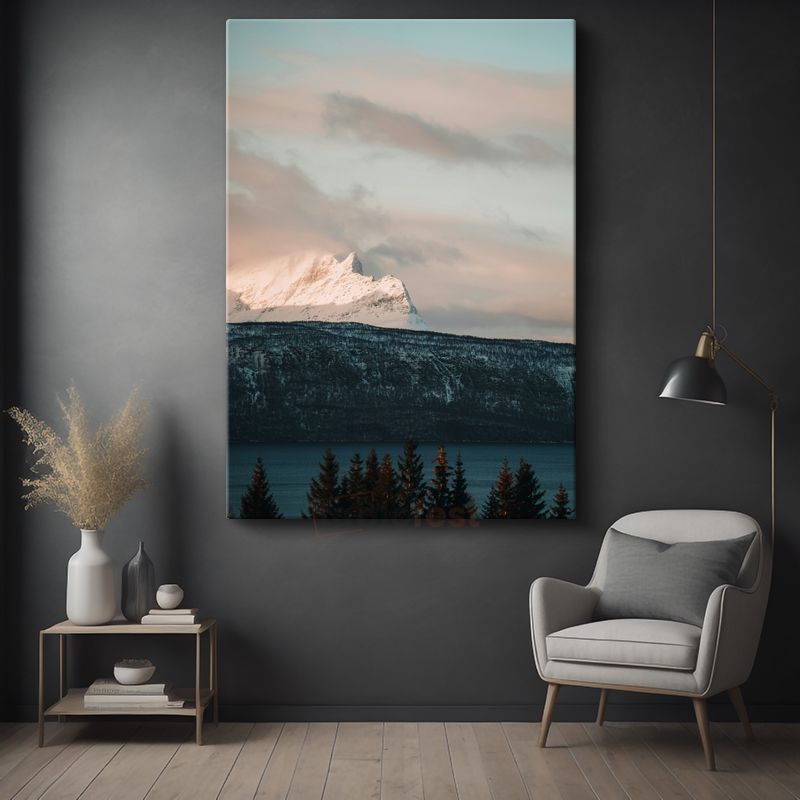 Alacakaranlık Zirvesi - Karlı Dağ ve Göl Manzarası Kanvas Tablo