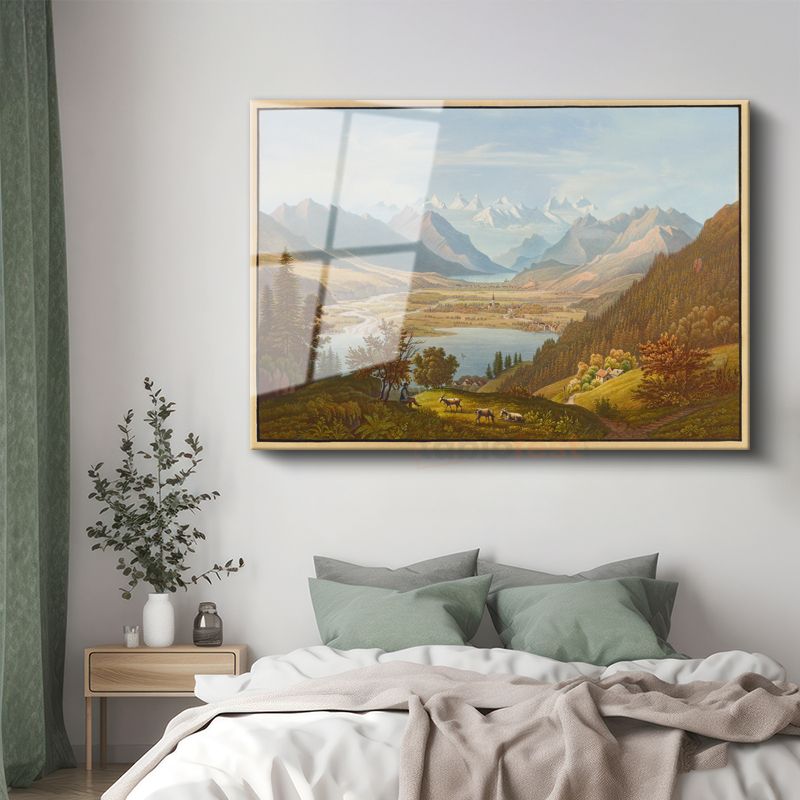 Albert Bierstadt - Alp Dağları Manzarası Cam Tablo