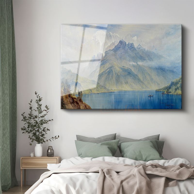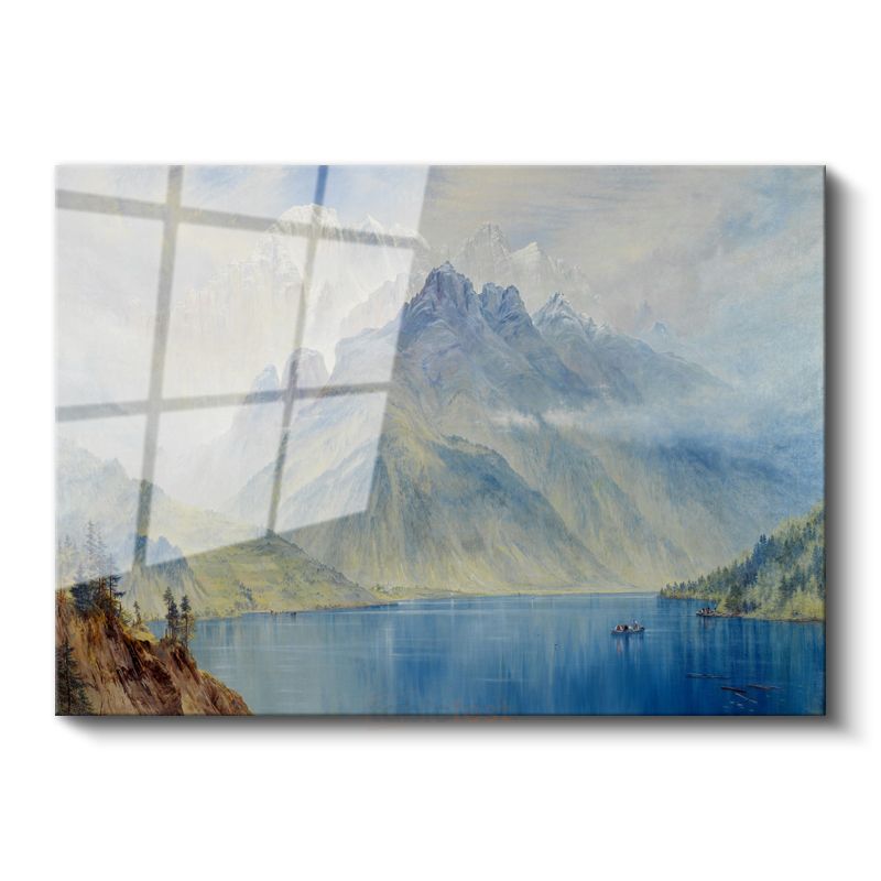 Albert Bierstadt - Dağ Gölü Manzarası Cam Tablo