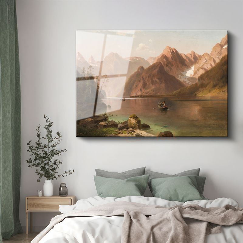 Albert Bierstadt - Dağ Gölü Manzarası Cam Tablo