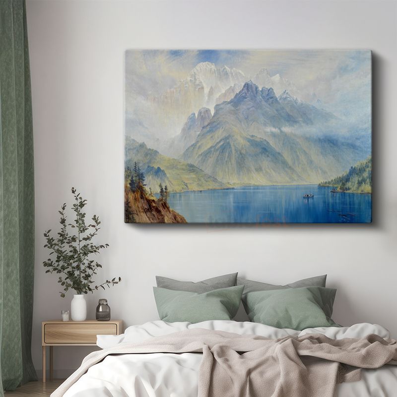 Albert Bierstadt - Dağ Gölü Manzarası Kanvas Tablo