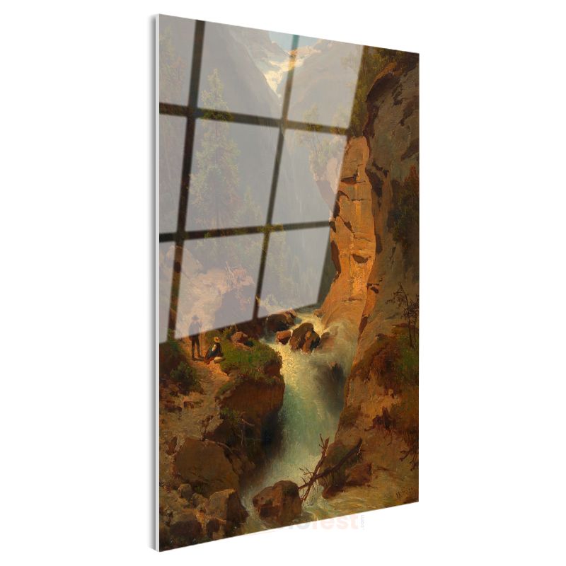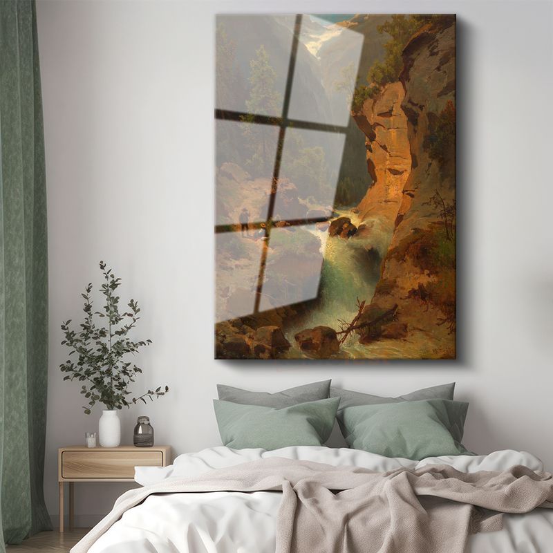 Albert Bierstadt - Dağlık Manzara ve Şelale Cam Tablo