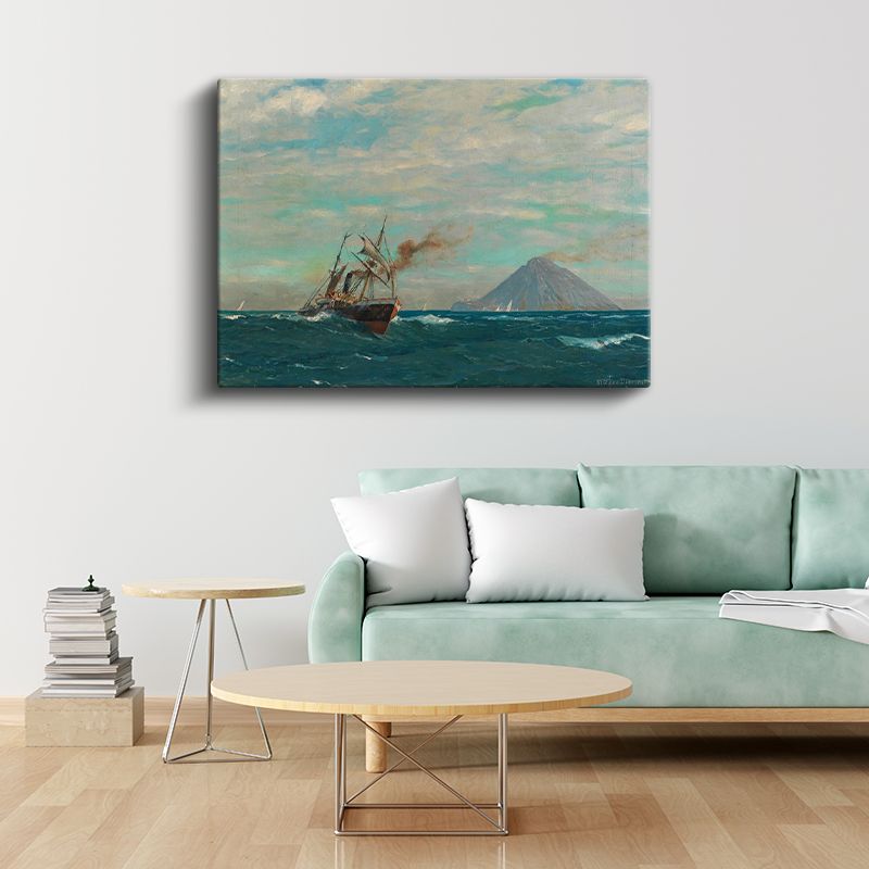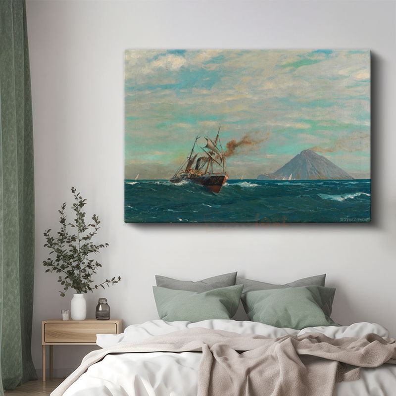 Albert Bierstadt - Denizde Buharlı Gemi Kanvas Tablo
