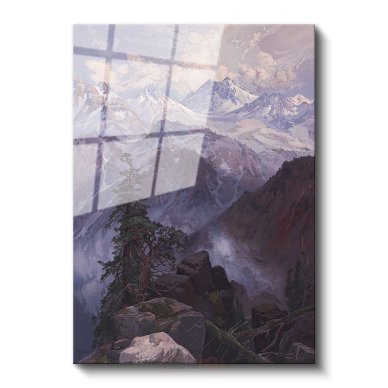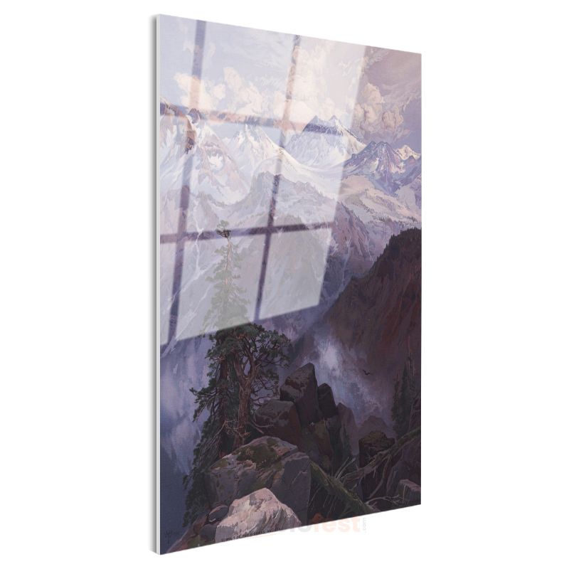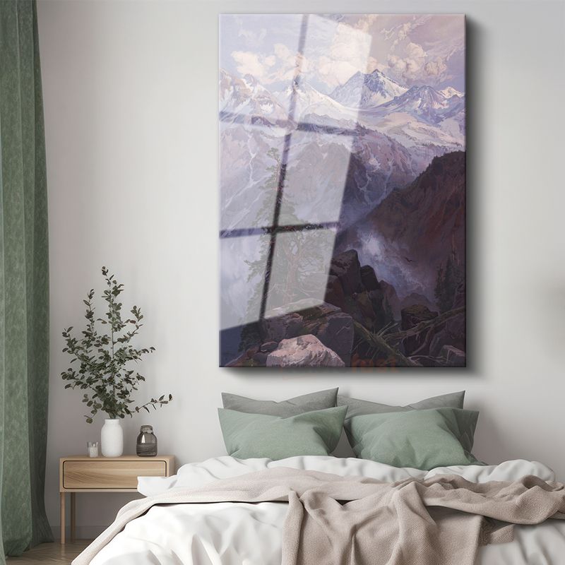 Albert Bierstadt - Karlı Dağ Manzarası Cam Tablo