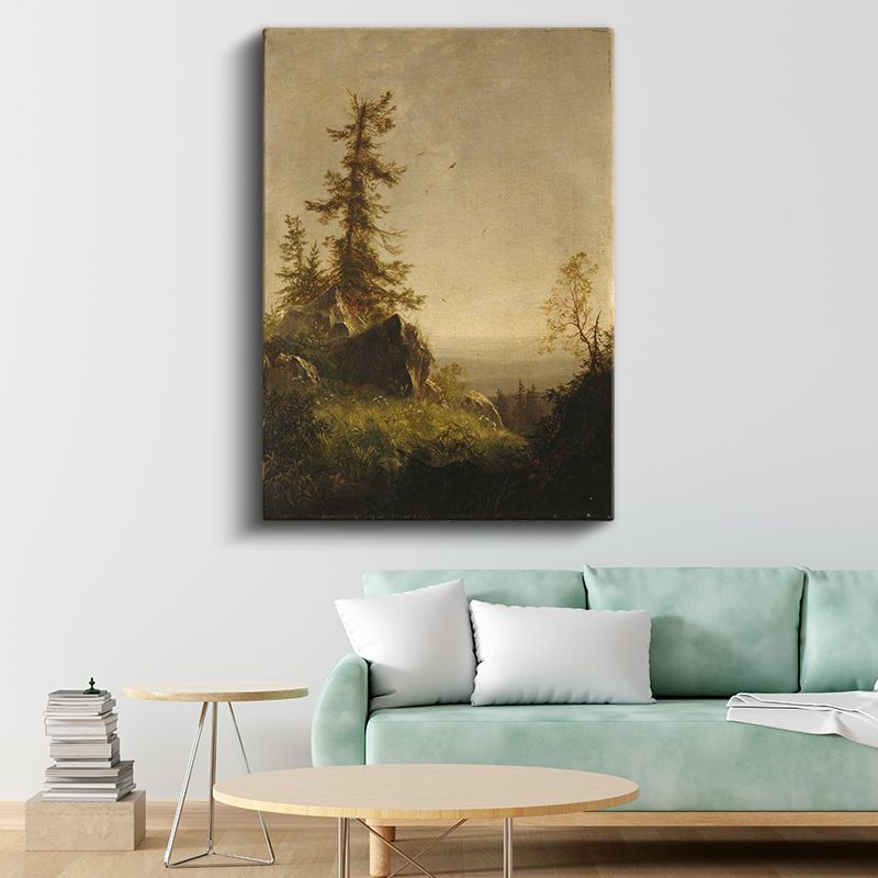 Albert Bierstadt - Ormanlık Tepe Manzarası Kanvas Tablo