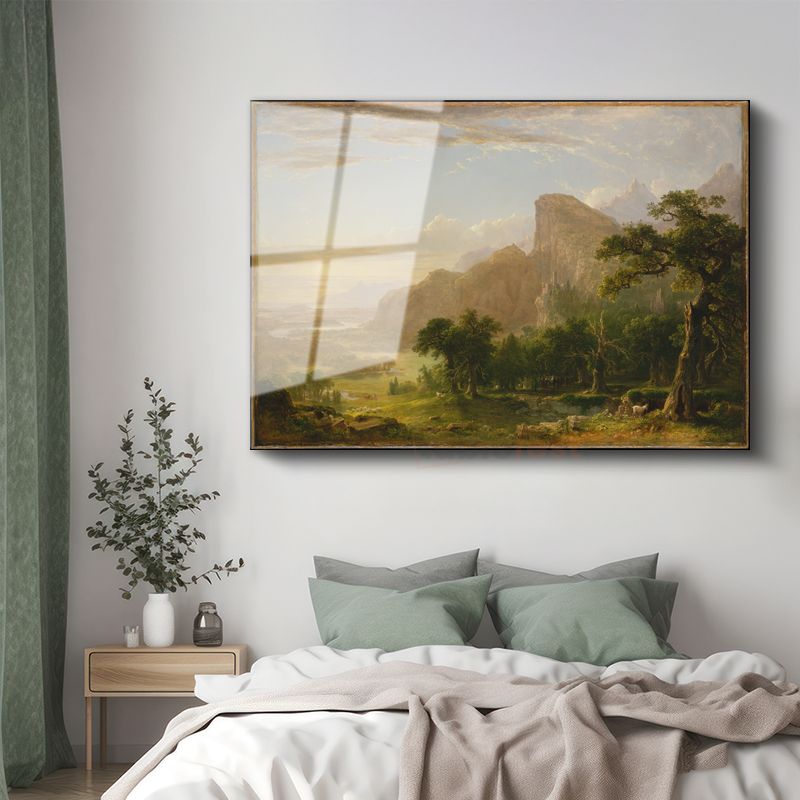 Albert Bierstadt - Vadideki Ağaçlar Cam Tablo